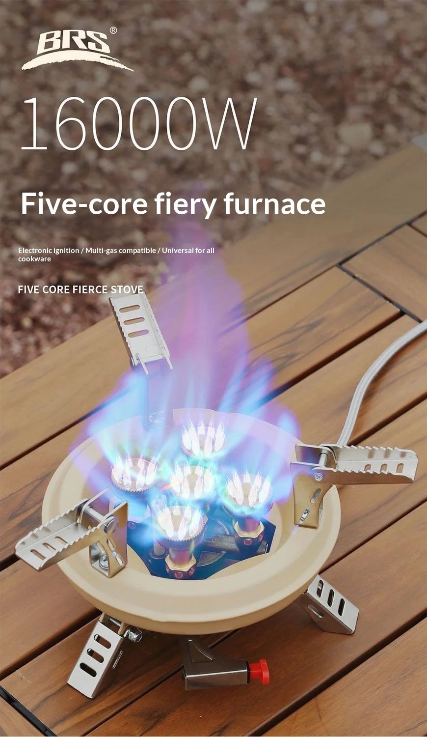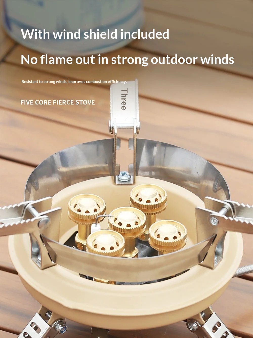 16000W 5-Core Portable Camping Stove | Windproof Gas Burner for Outdoor Cooking