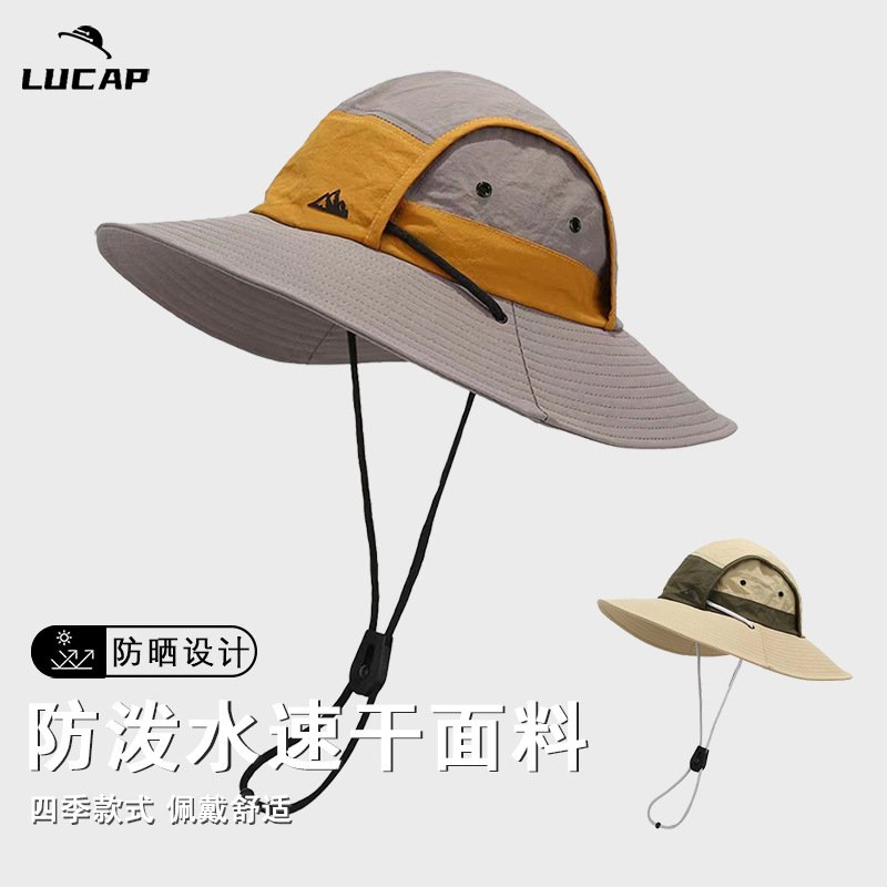 9328 Quick-Drying Large-Brimmed Color-Blocked Outdoor Sun Protection Mountaineering Hat Waterproof and Windproof Fisherman Hat Men’s Outdoor Camping Sun Hat