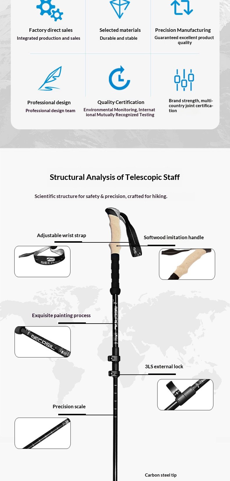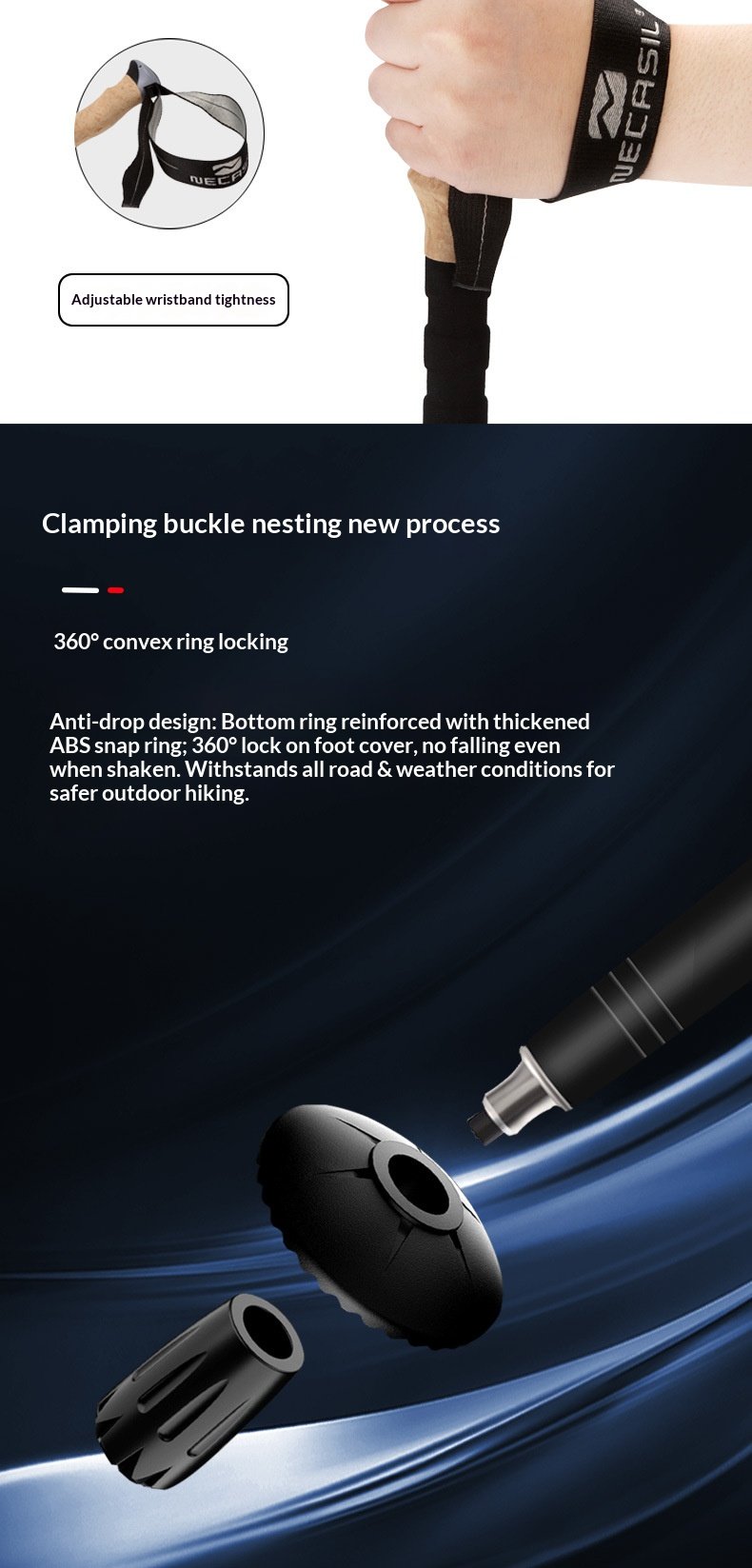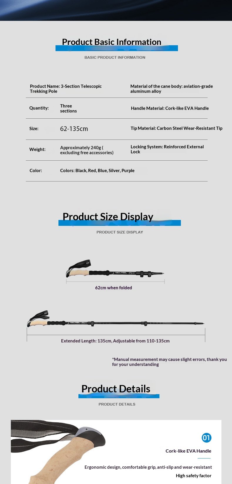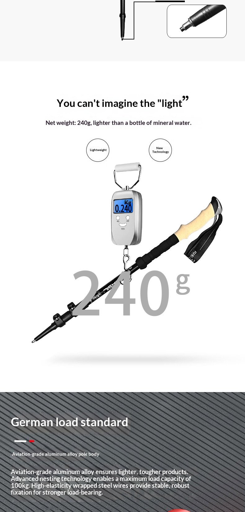 Product: 6-series aluminum alloy three section telescopic external lock