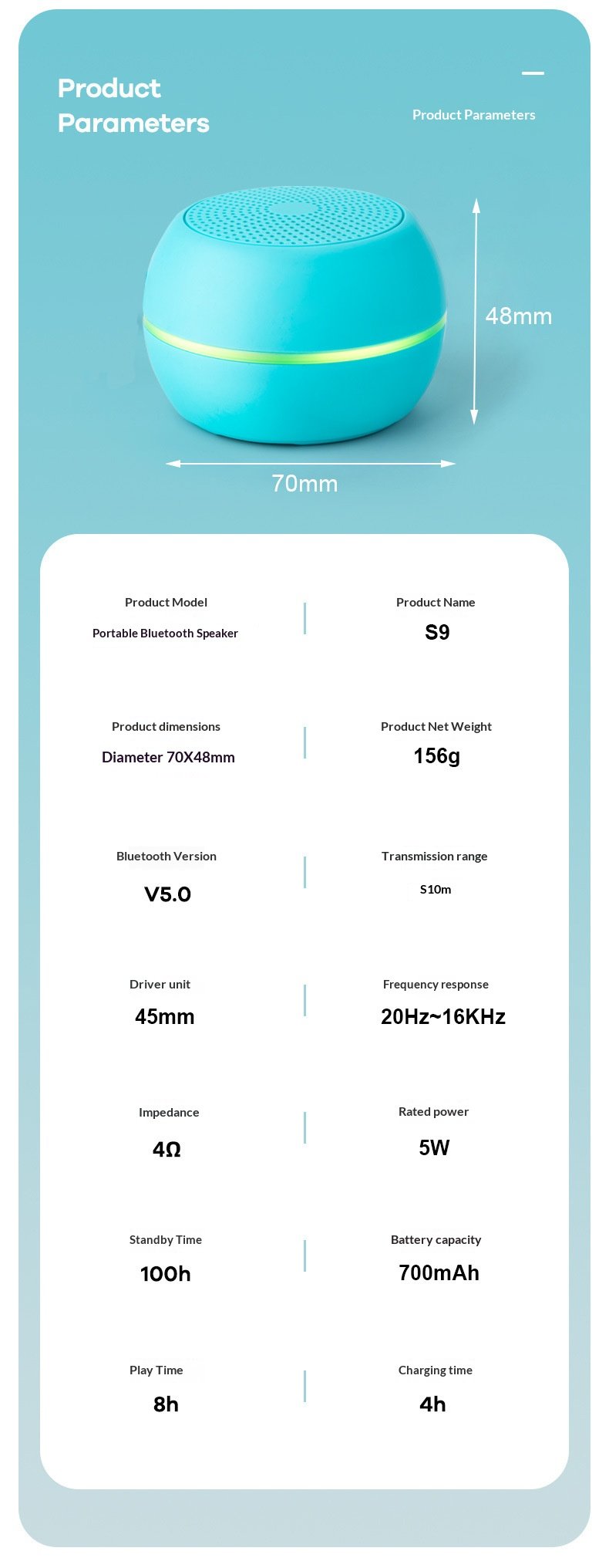 Bluetooth speaker S9 wireless mini Bluetooth speaker outdoor portable waterproof subwoofer speaker wholesale