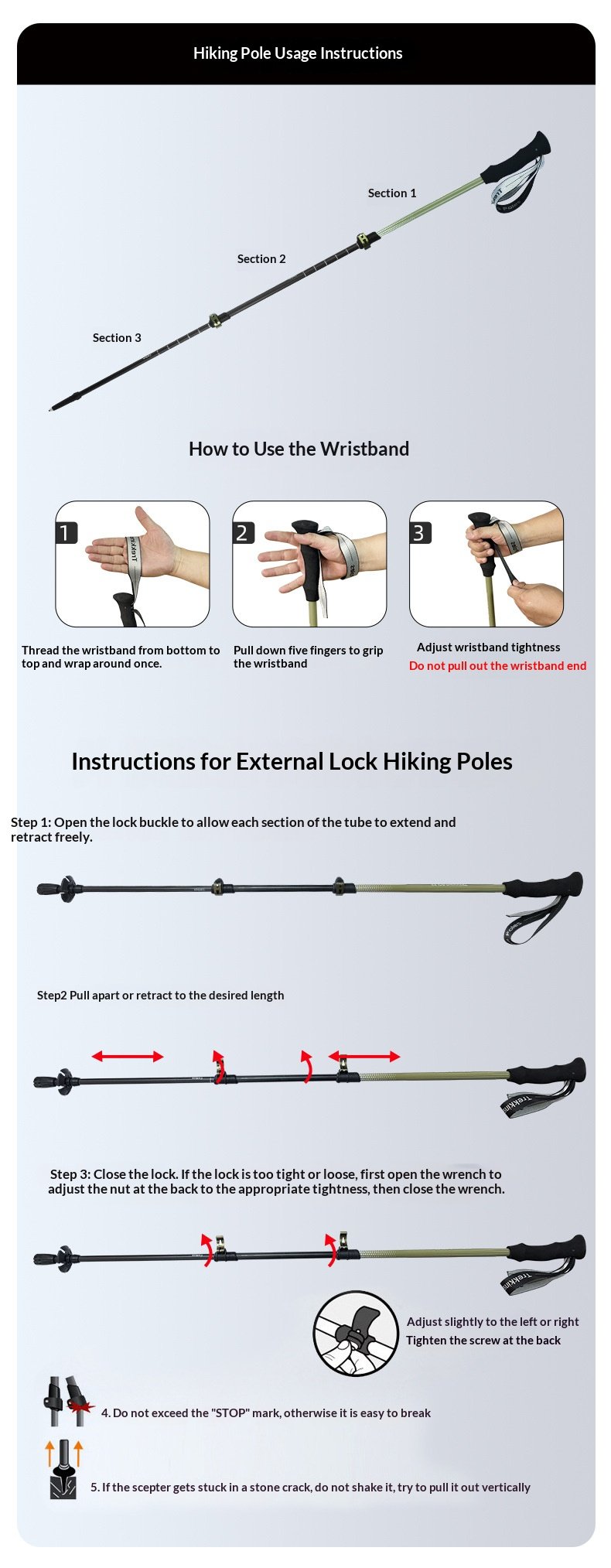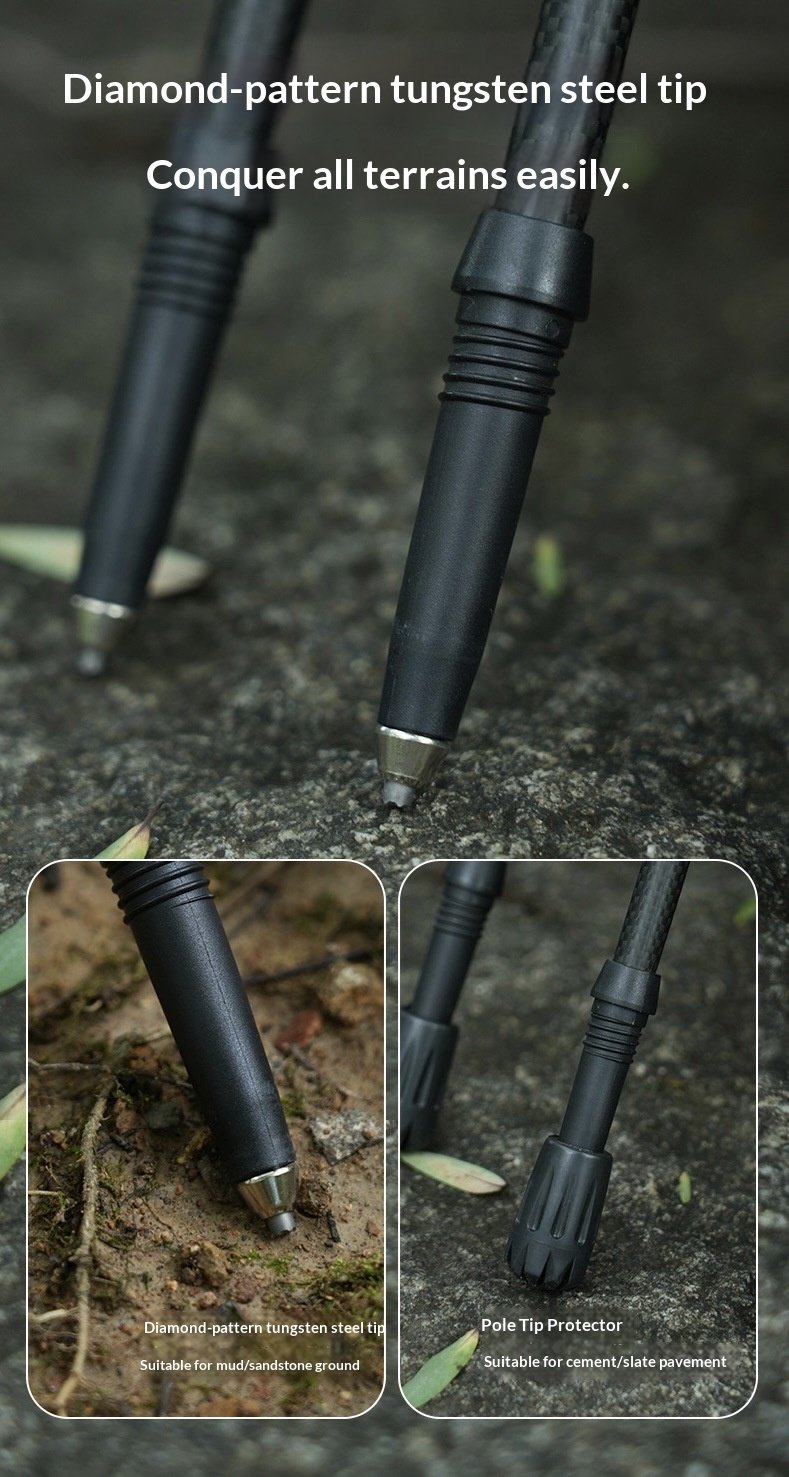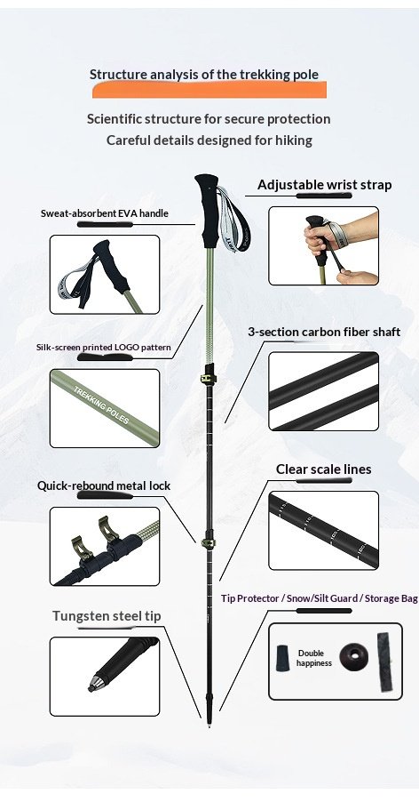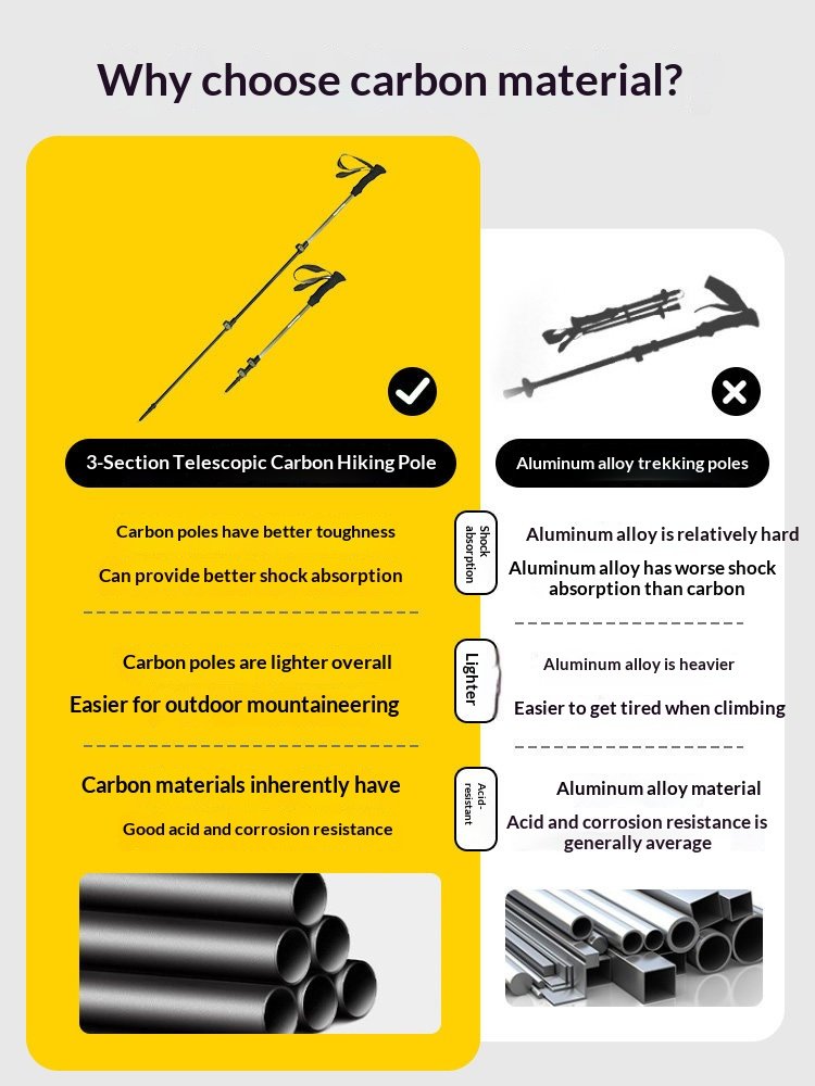 Carbon fiber hiking cane, carbon ultra light three section telescopic cane, professional outdoor hiking cane for men and women, mountain climbing equipment