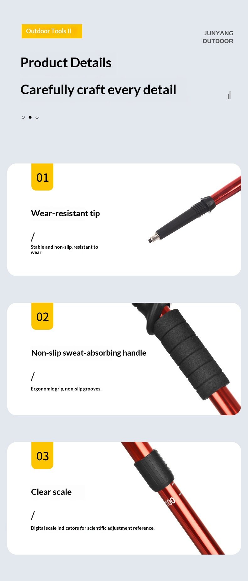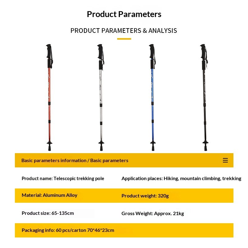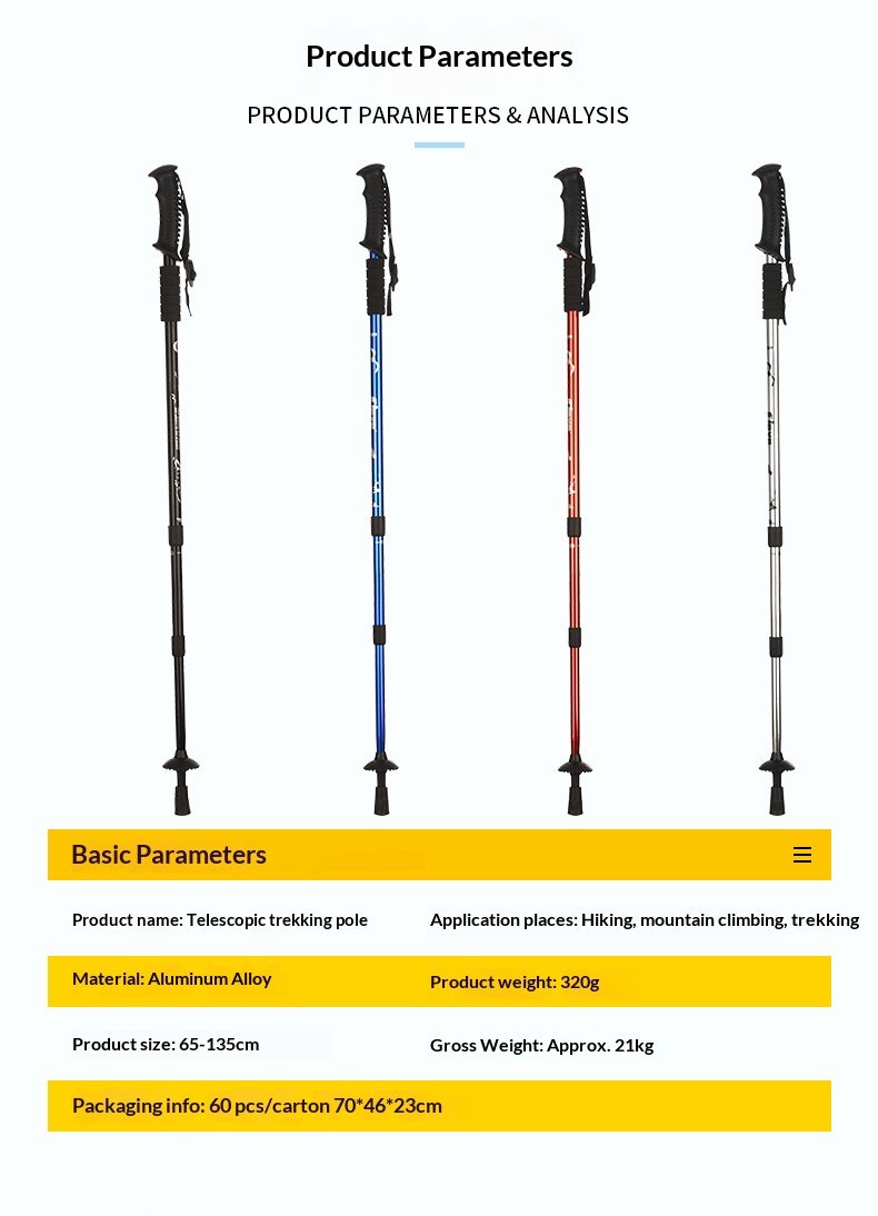 | Color | Straight handle black, Straight handle silver, Straight handle blue, Straight handle red, T handle black, T-handle blue, T handle red, T-handle silver, Climbing poles and cloth bags, Children's Blue, Children's Pink |