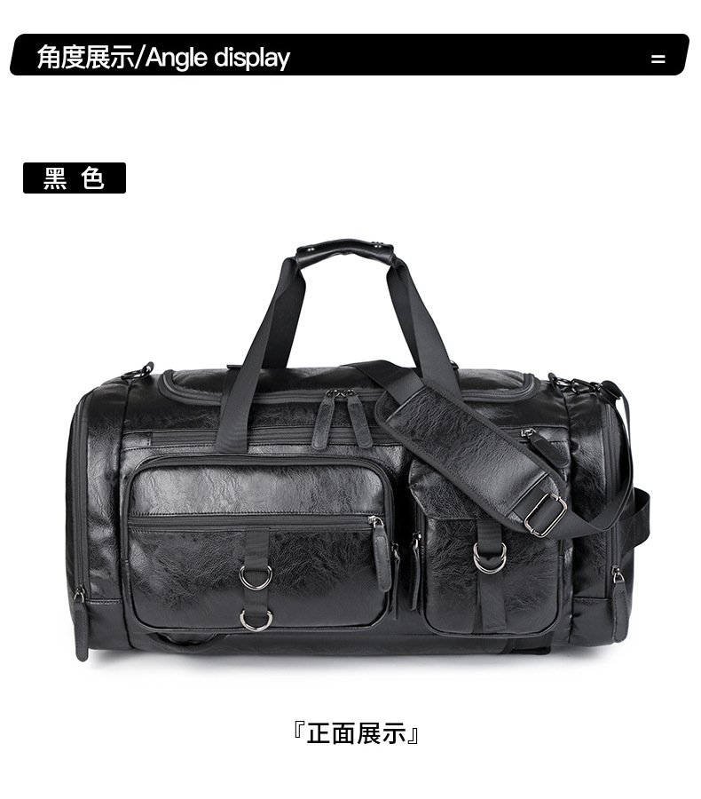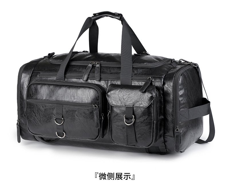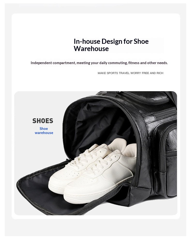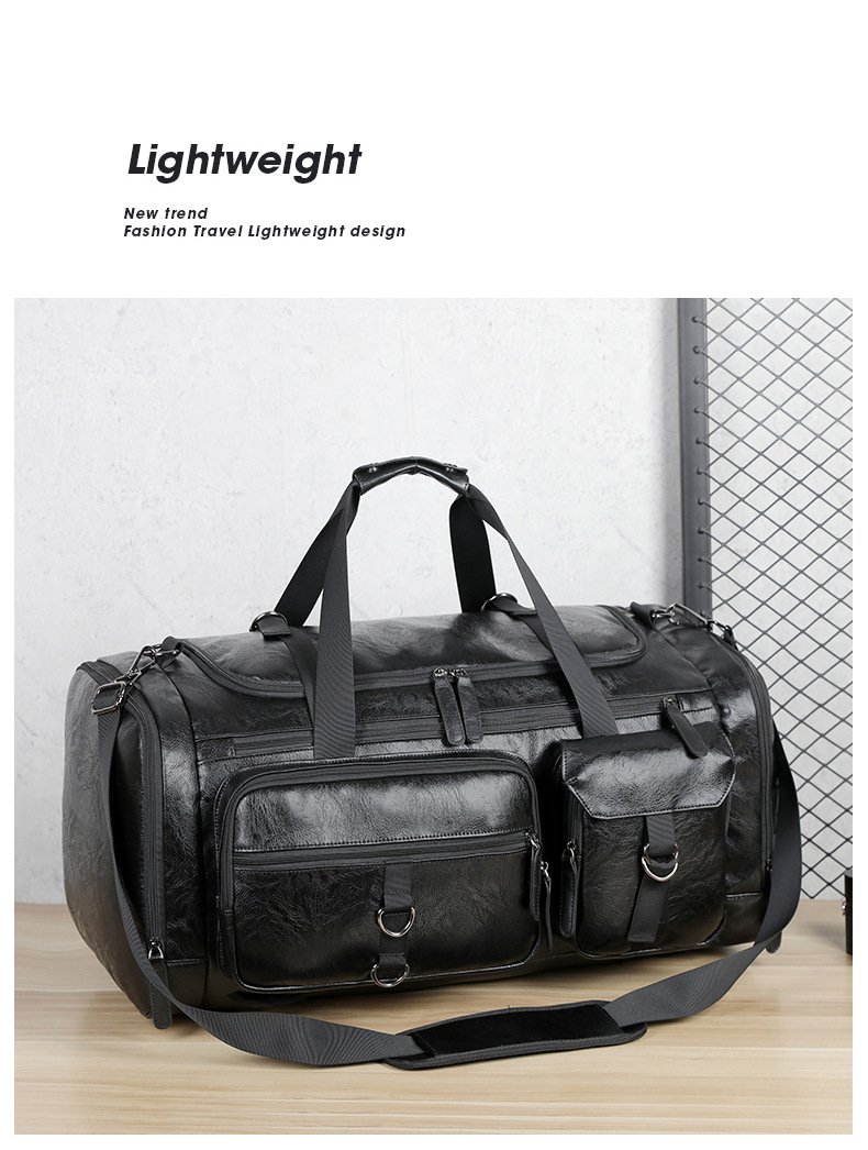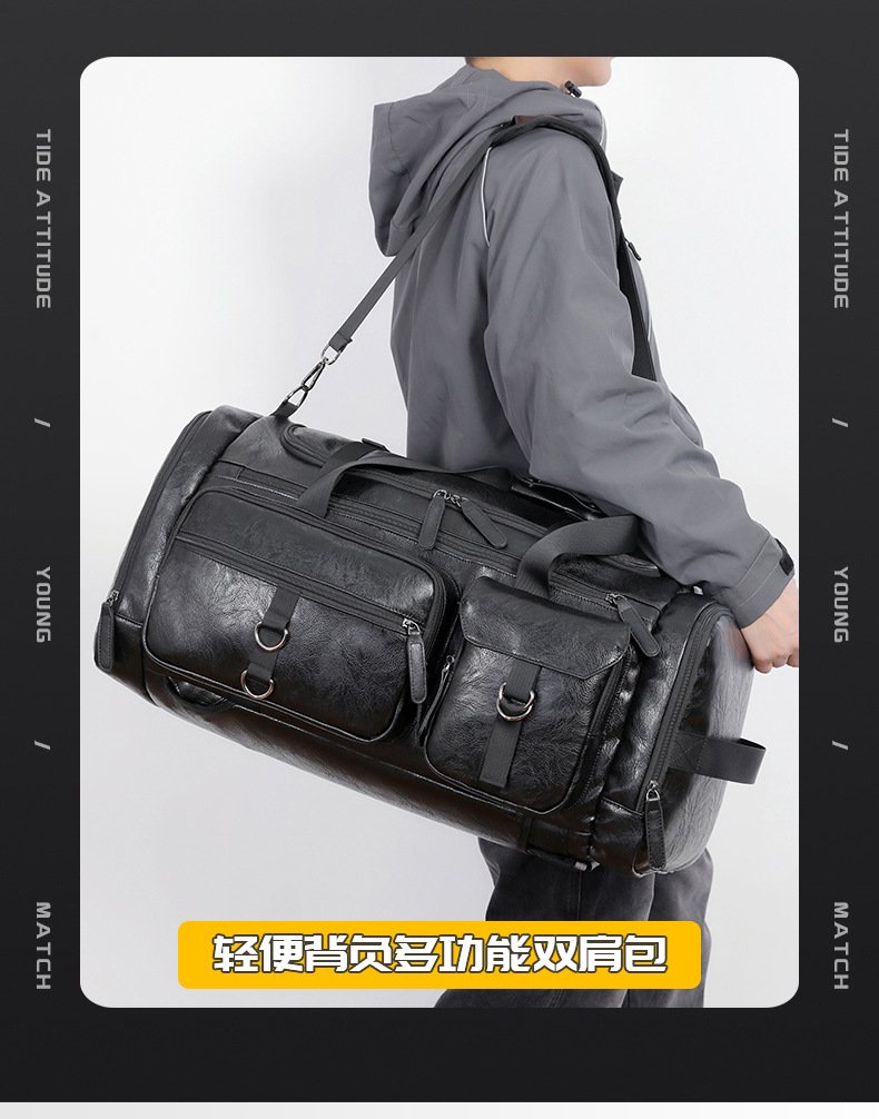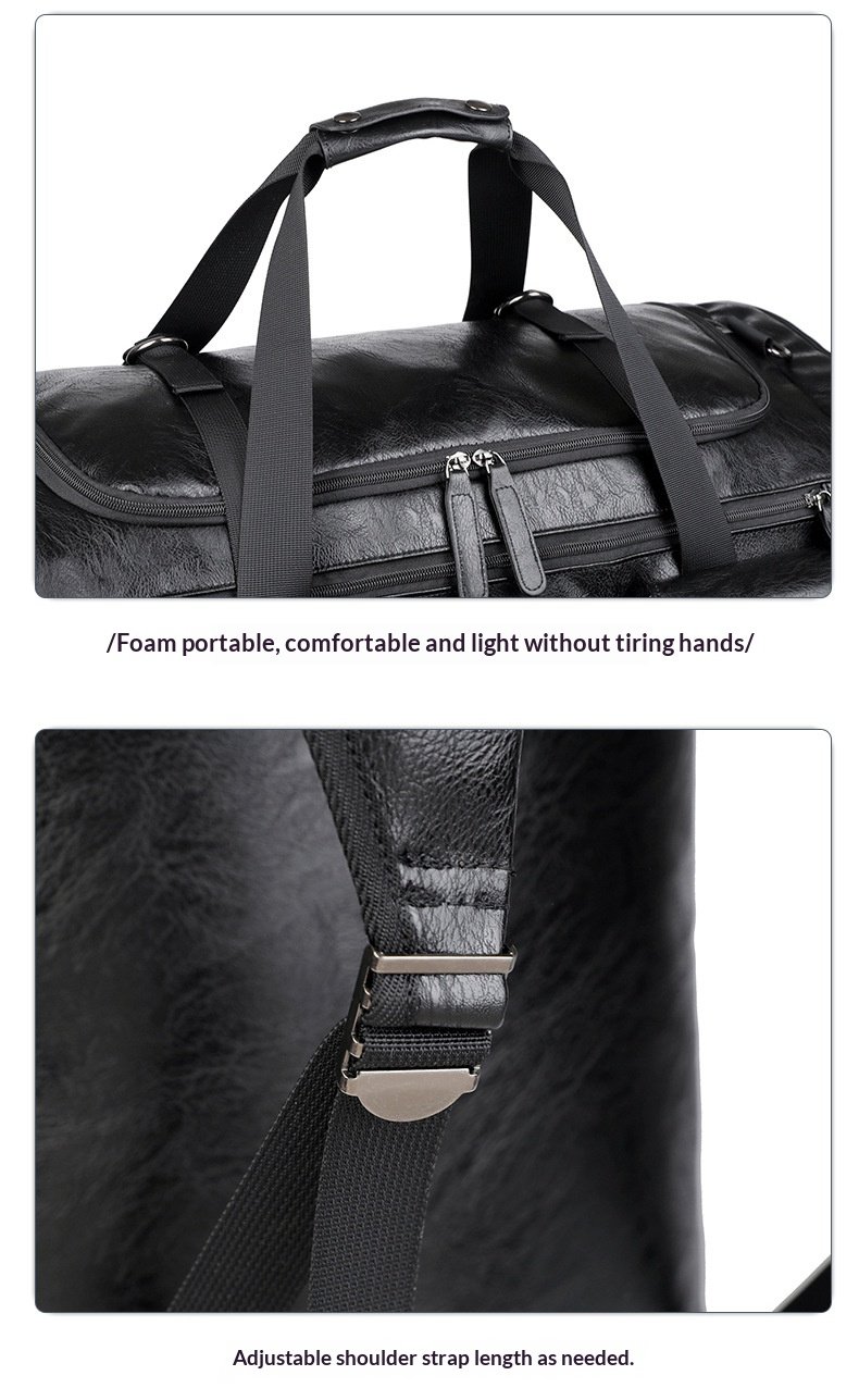 Cross-border New Men’s PU Leather Large Capacity Travel Bag Portable Crossbody Fitness Travel Luggage Bag Dry and Wet Separation