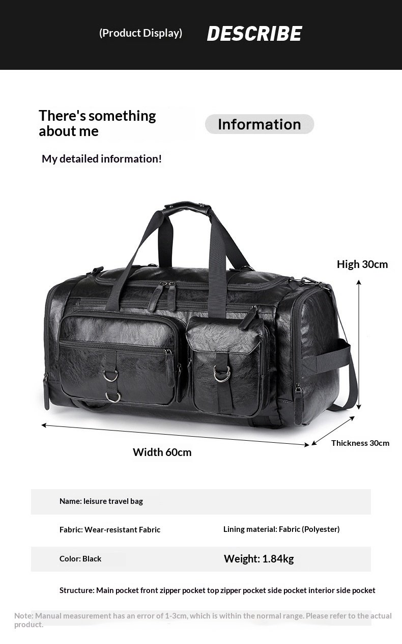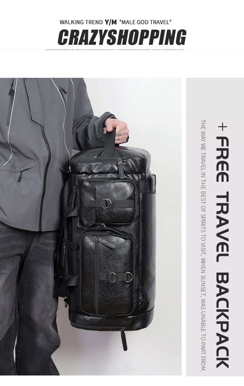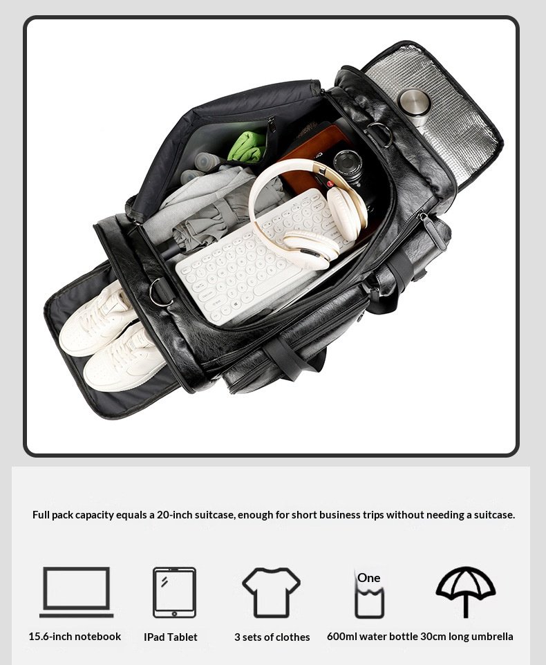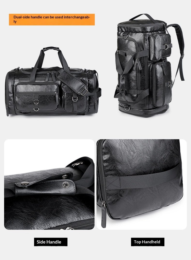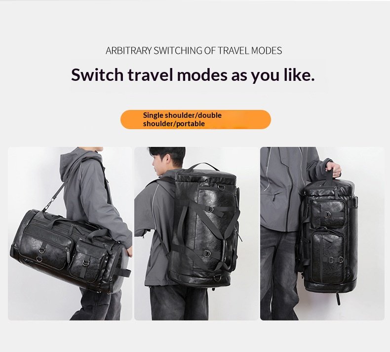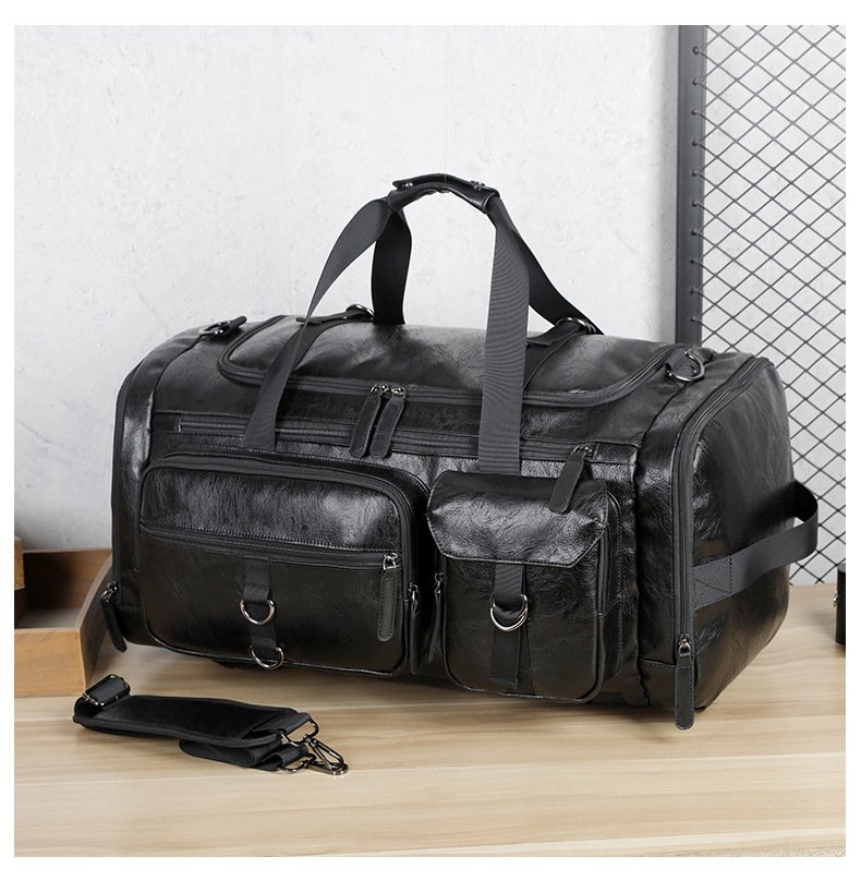 Cross-border New Men’s PU Leather Large Capacity Travel Bag Portable Crossbody Fitness Travel Luggage Bag Dry and Wet Separation