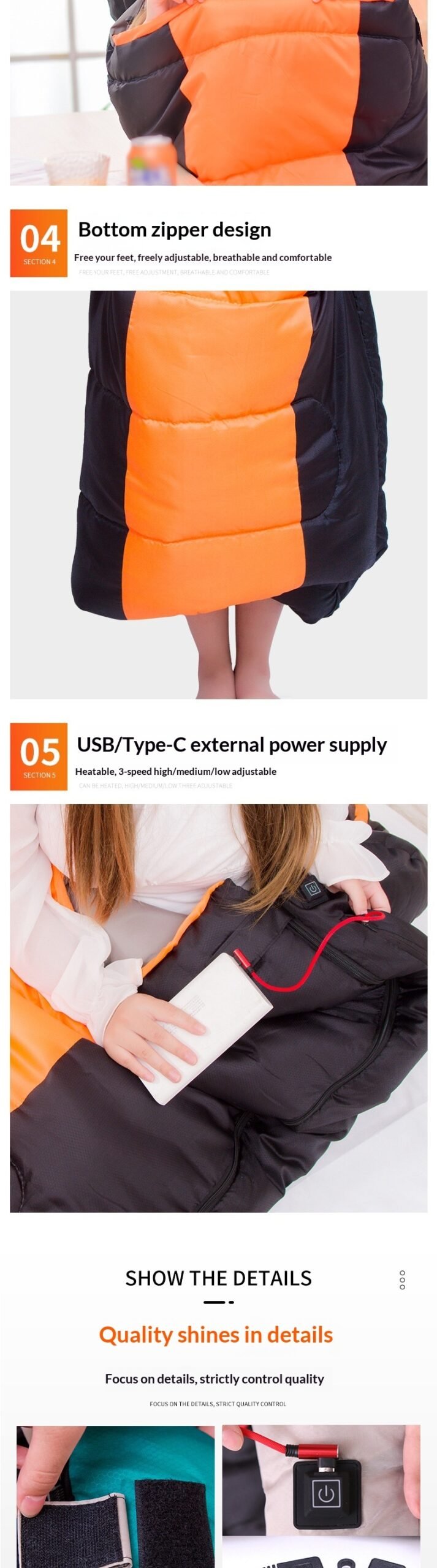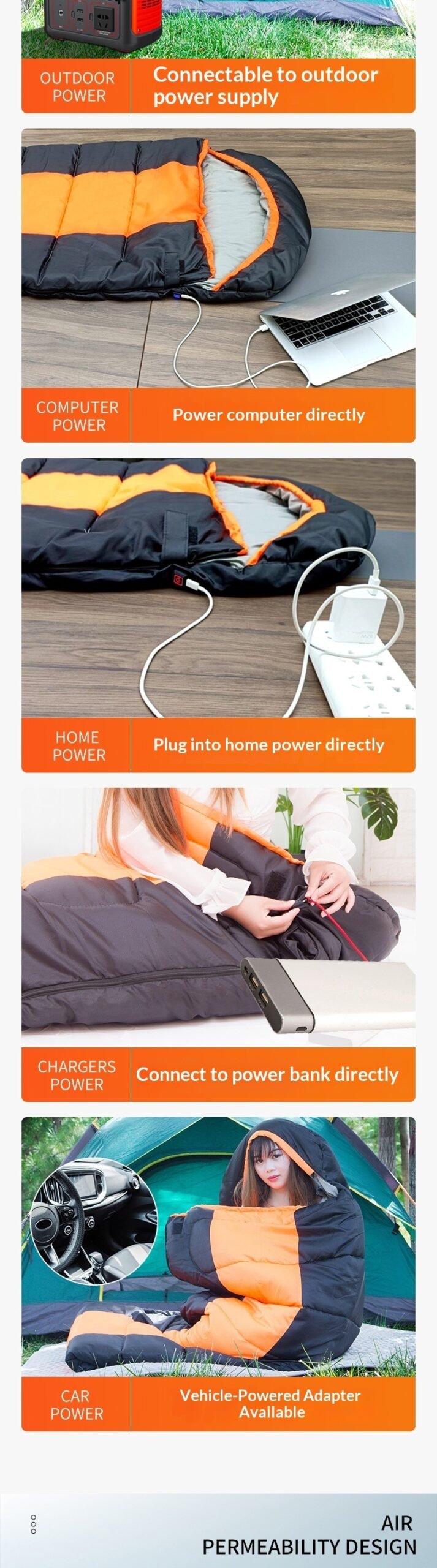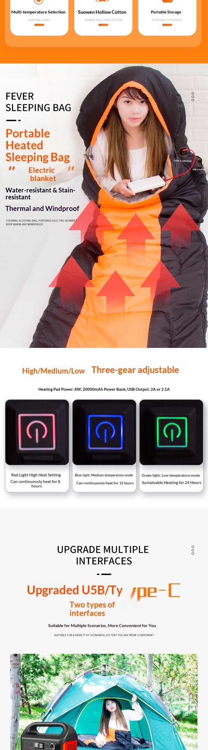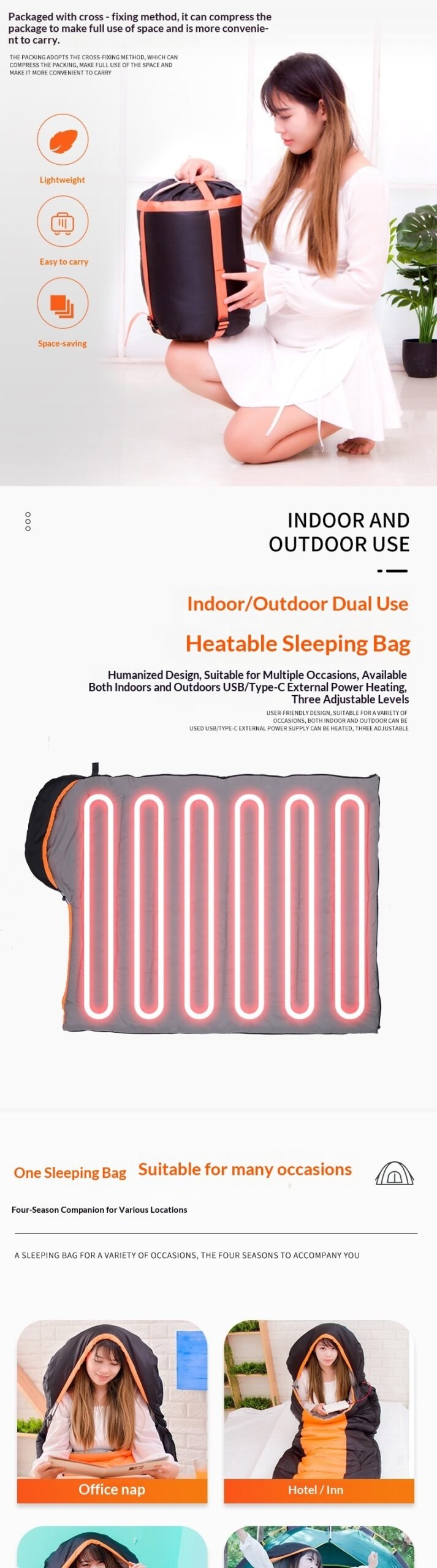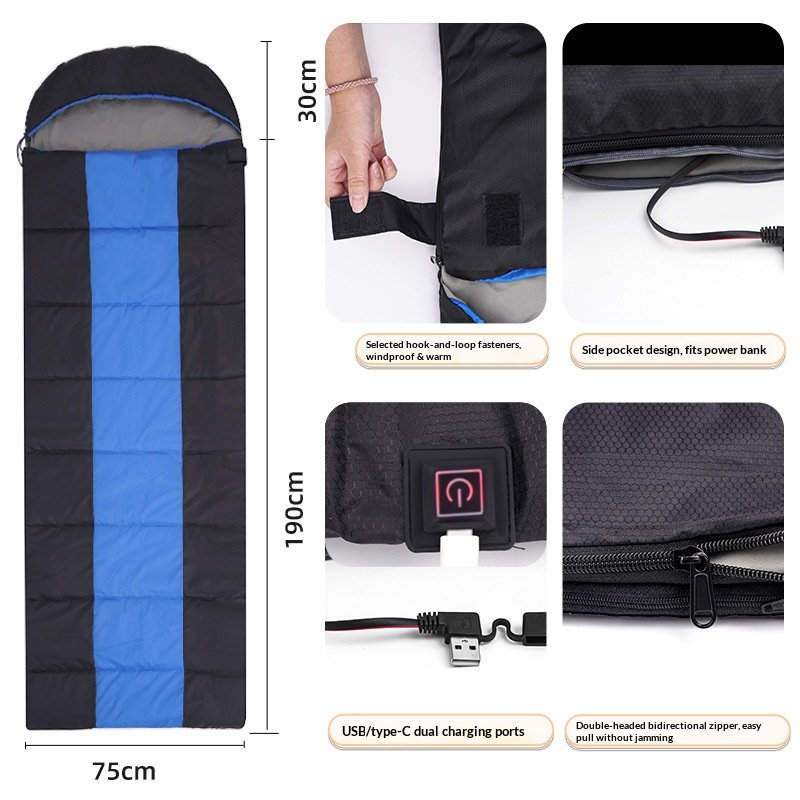 Heating sleeping bag 5V heating camping -20 ℃ electric heating sleeping bag Type-C/USB dual interface CE, FCC 220 * 75cm