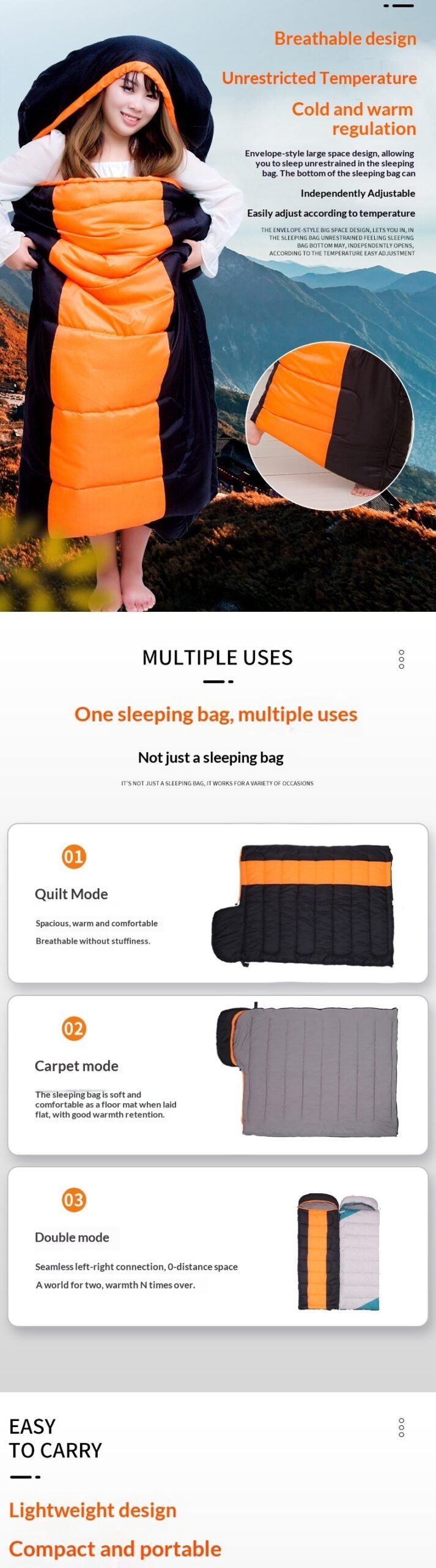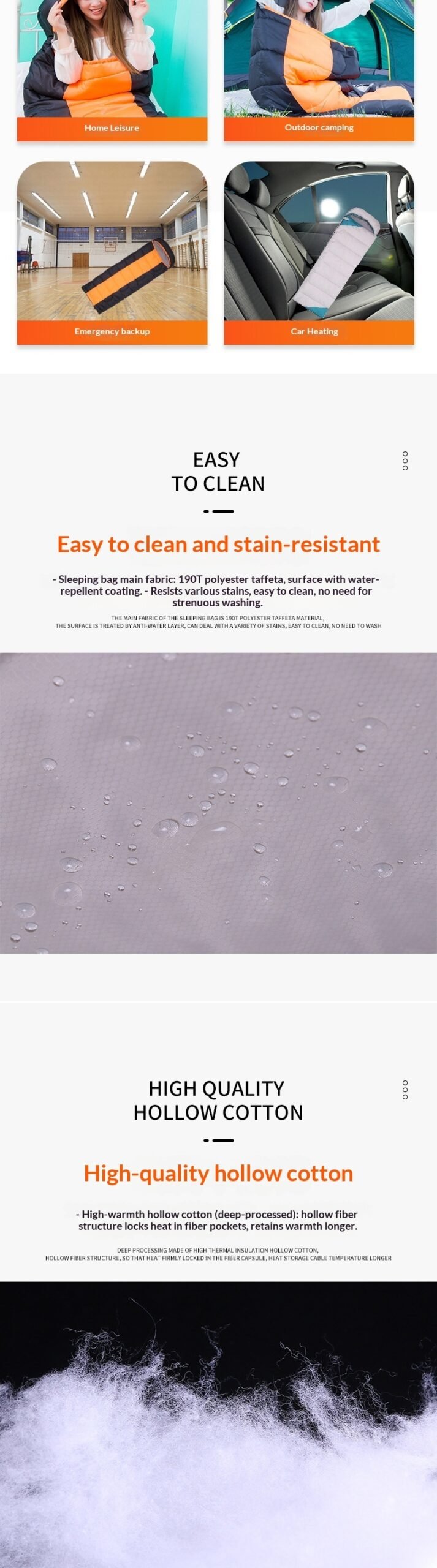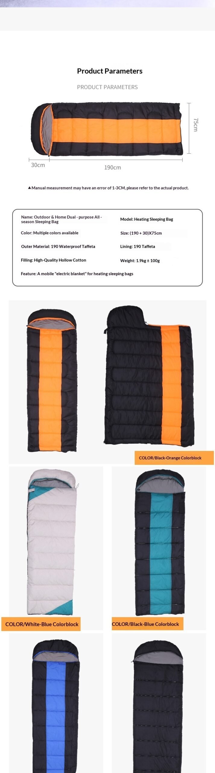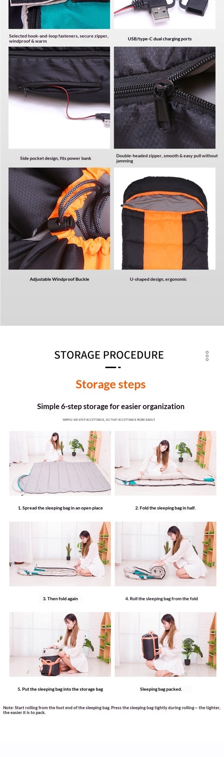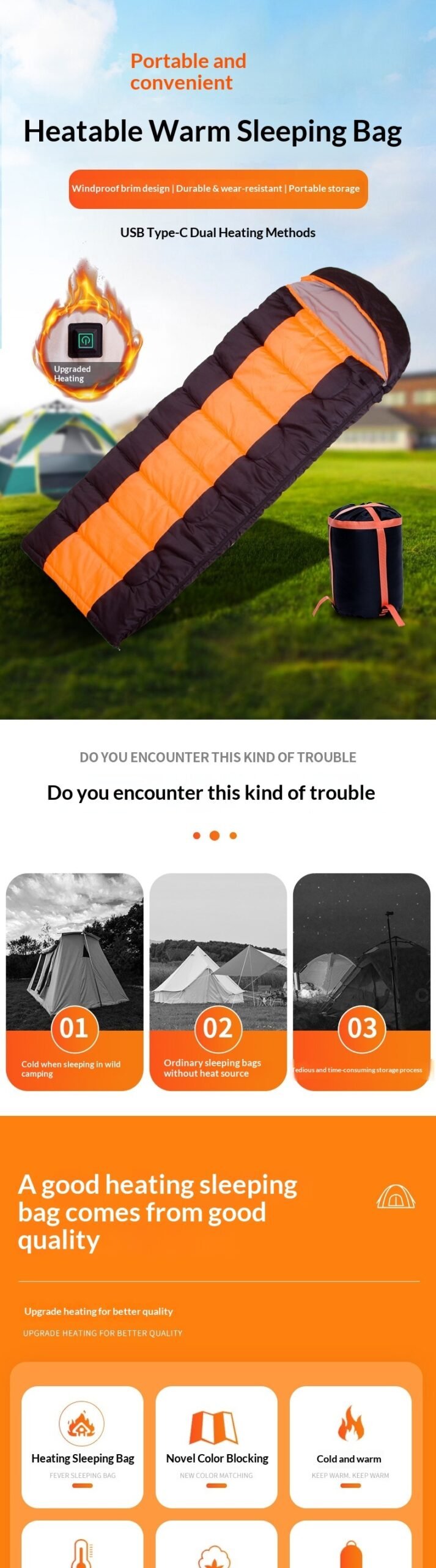 Heating sleeping bag 5V heating camping -20 ℃ electric heating sleeping bag Type-C/USB dual interface CE, FCC 220 * 75cm