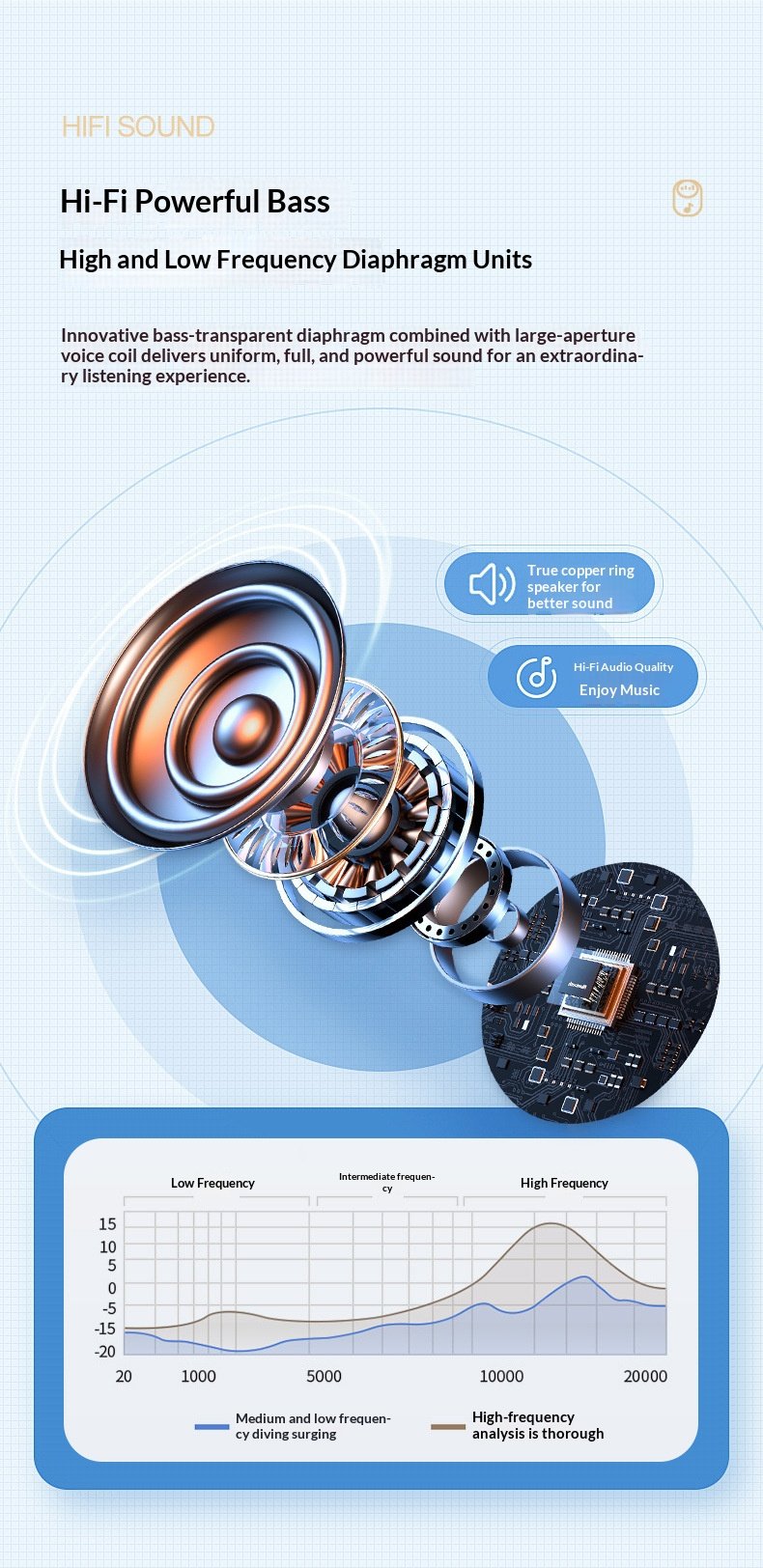 Frequency response range: 20Hz-20KHz