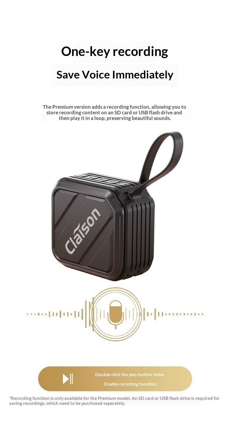 IPX7 outdoor waterproof speaker, hands-free calling, 5w subwoofer, one click recording, high-quality Bluetooth speaker