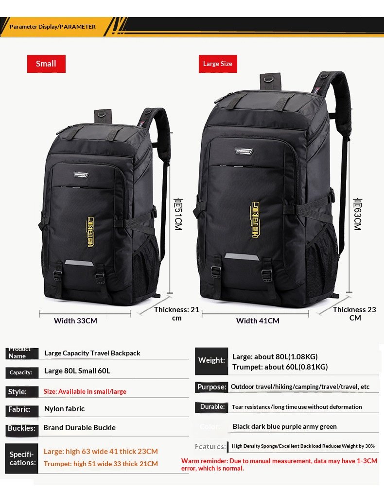 Large-capacity backpack men’s travel bag outdoor hiking bag women’s daypack luggage bag sports schoolbag travel backpack