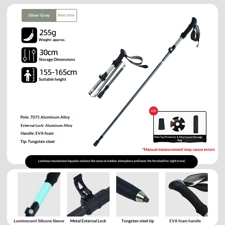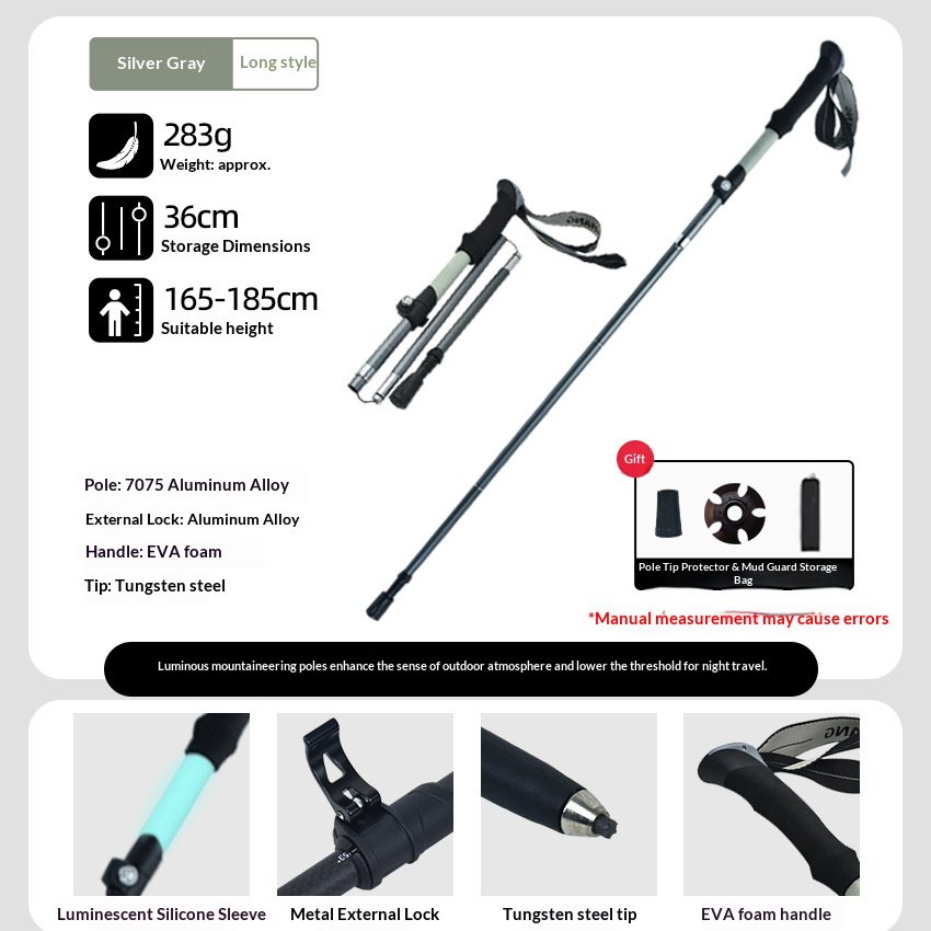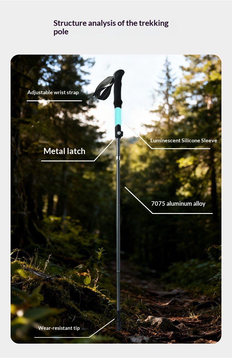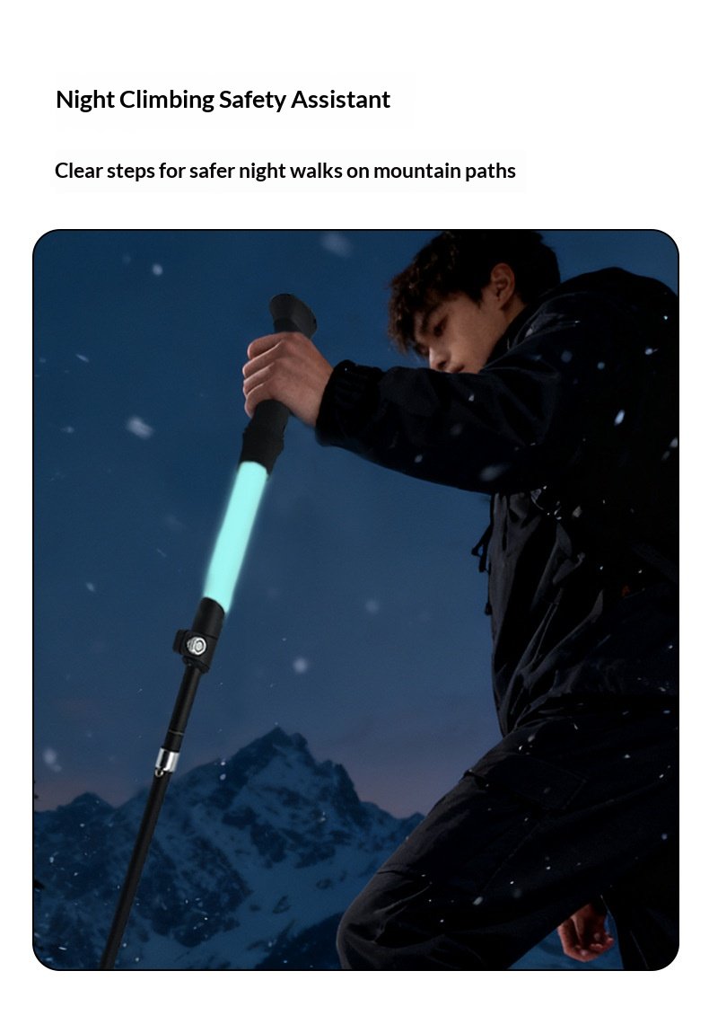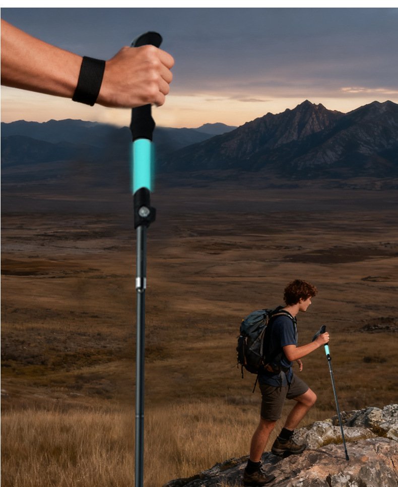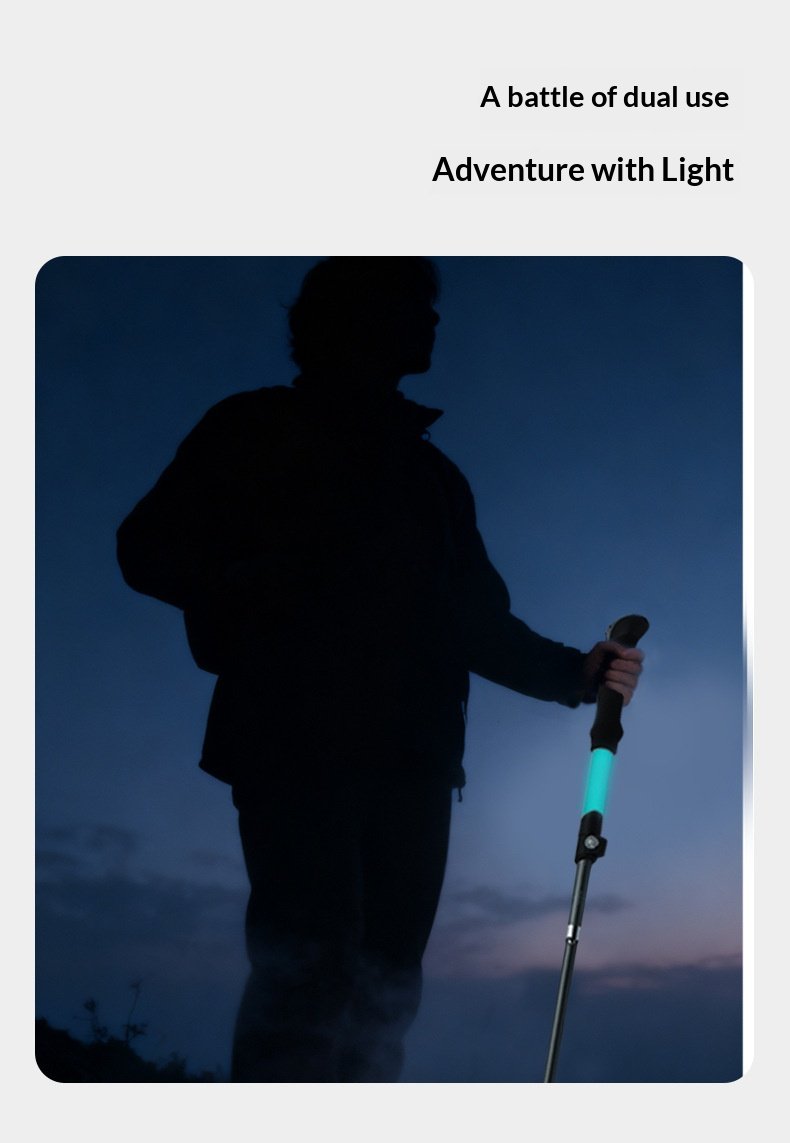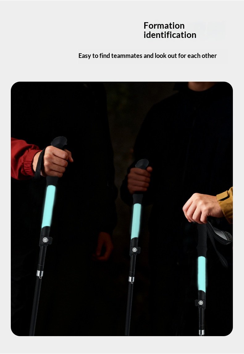 Luminous hiking stick made of silicone, foldable and extendable, lightweight aluminum alloy outdoor climbing equipment