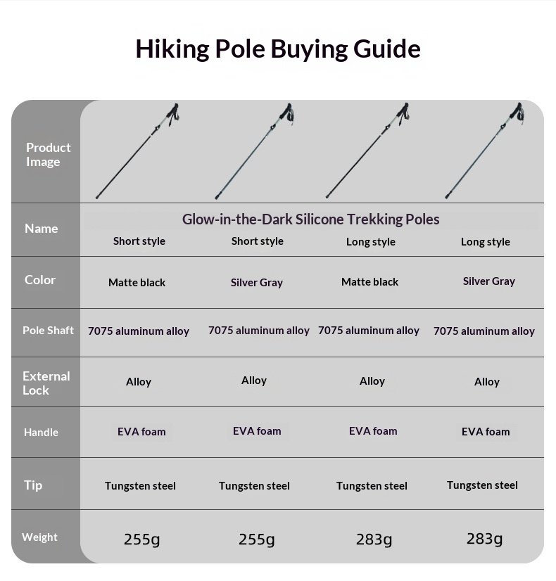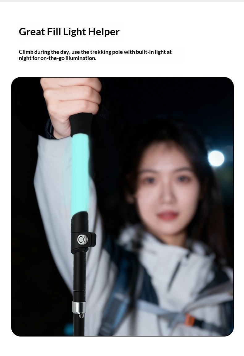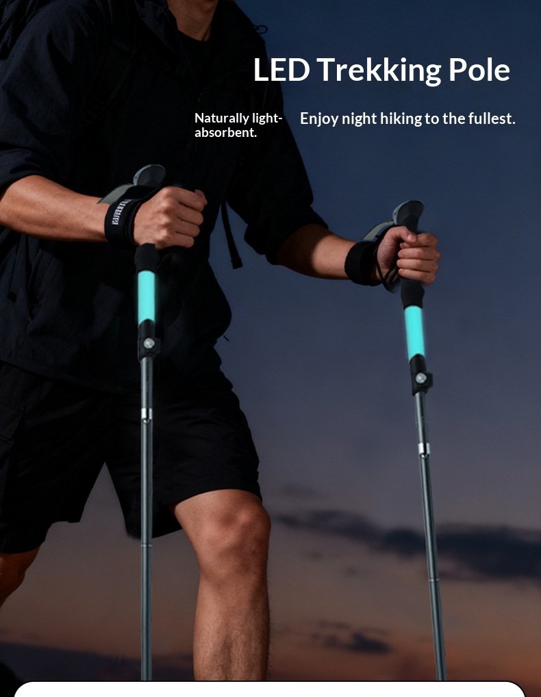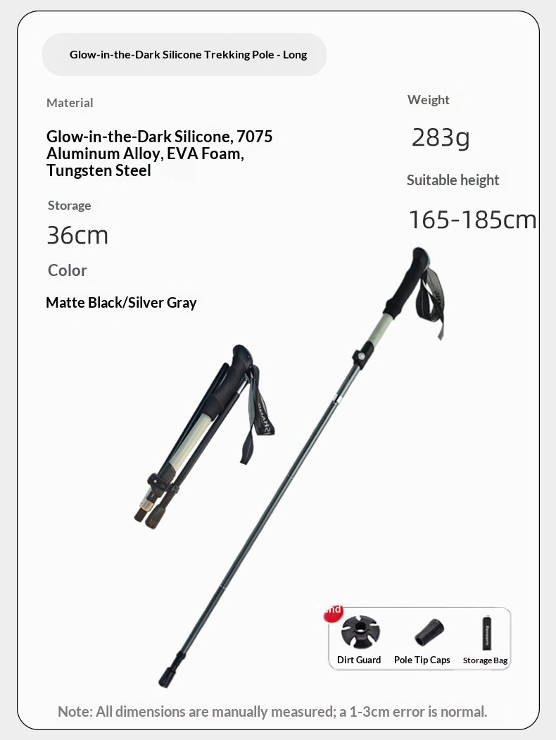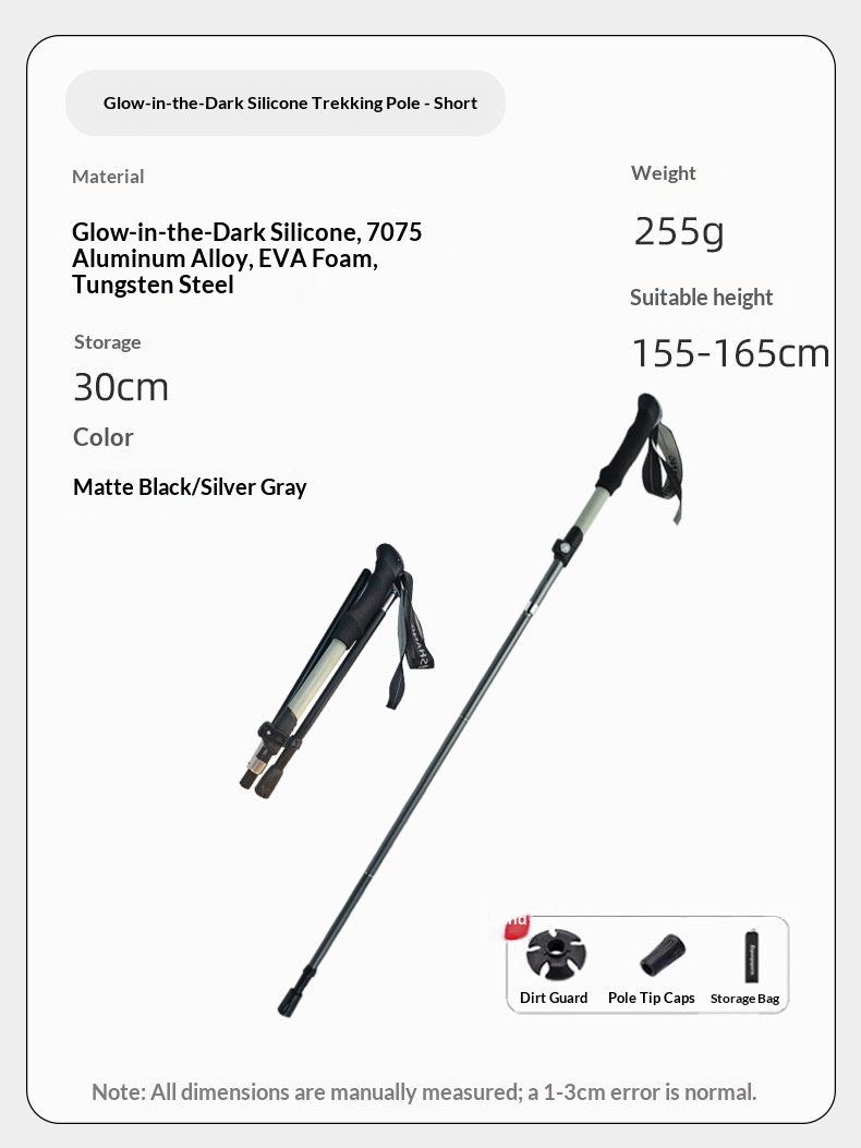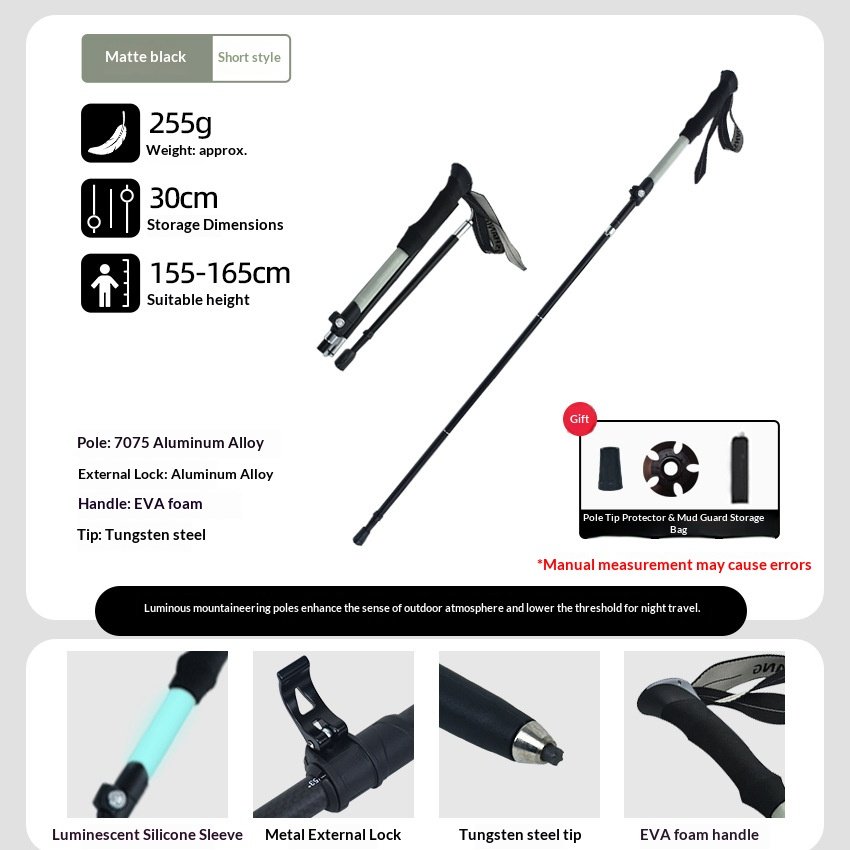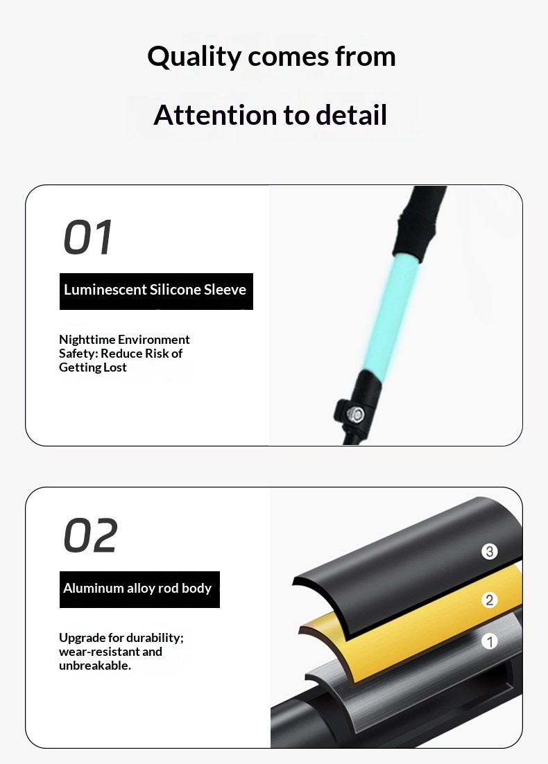 Luminous hiking stick made of silicone, foldable and extendable, lightweight aluminum alloy outdoor climbing equipment
