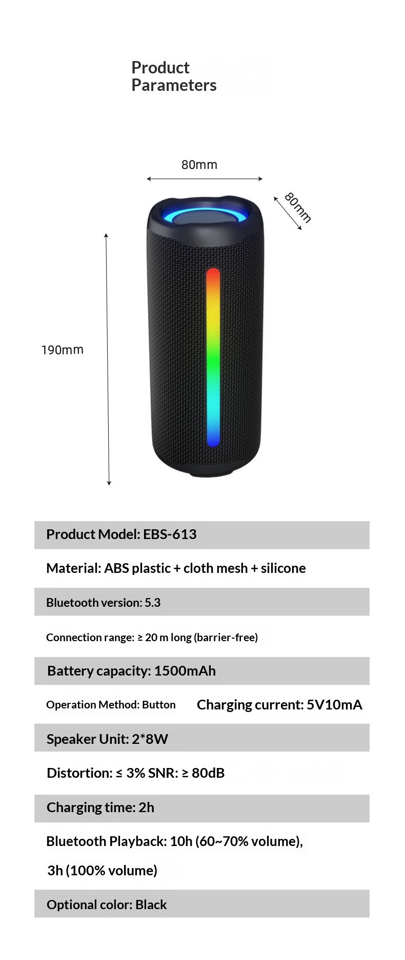 Appearance size: Size: 80x80x190mm