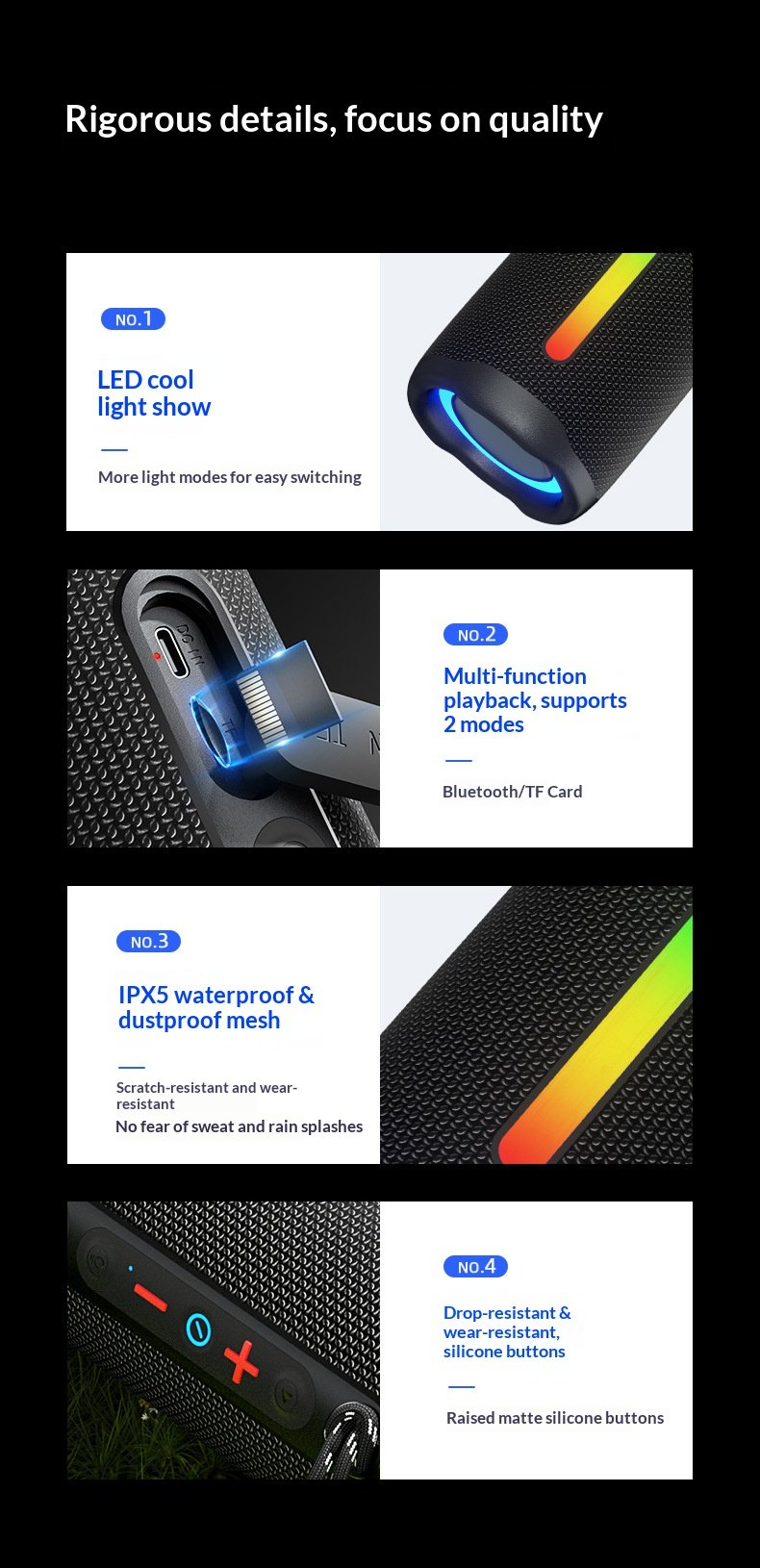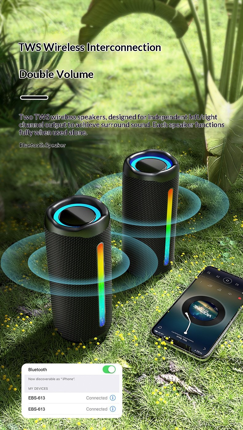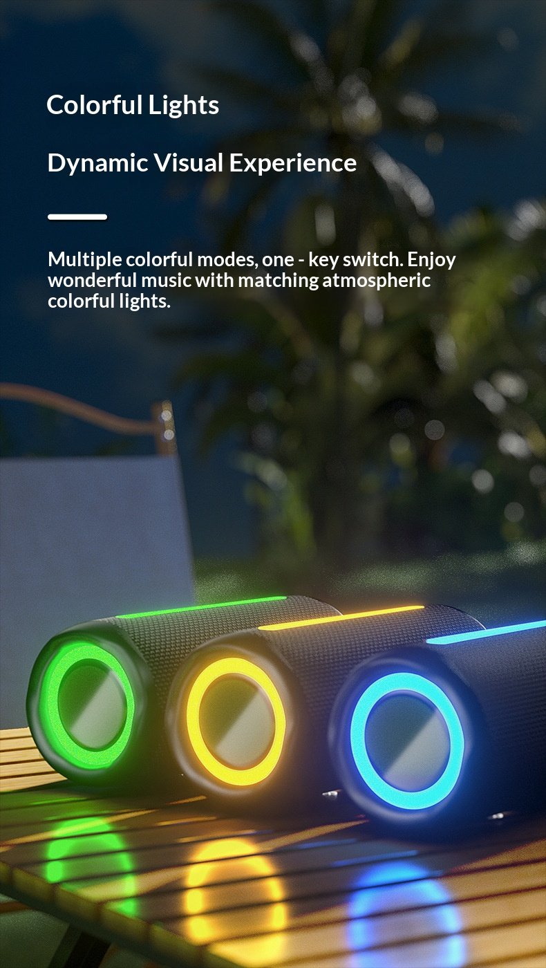 New wireless Bluetooth speaker outdoor waterproof portable subwoofer with RGB light cylindrical speaker