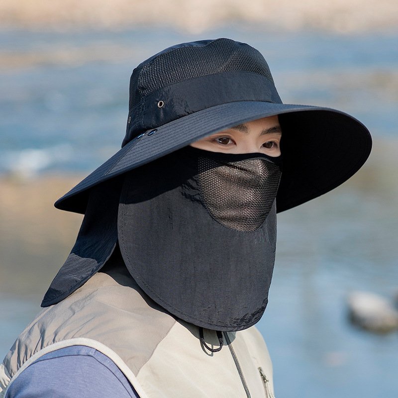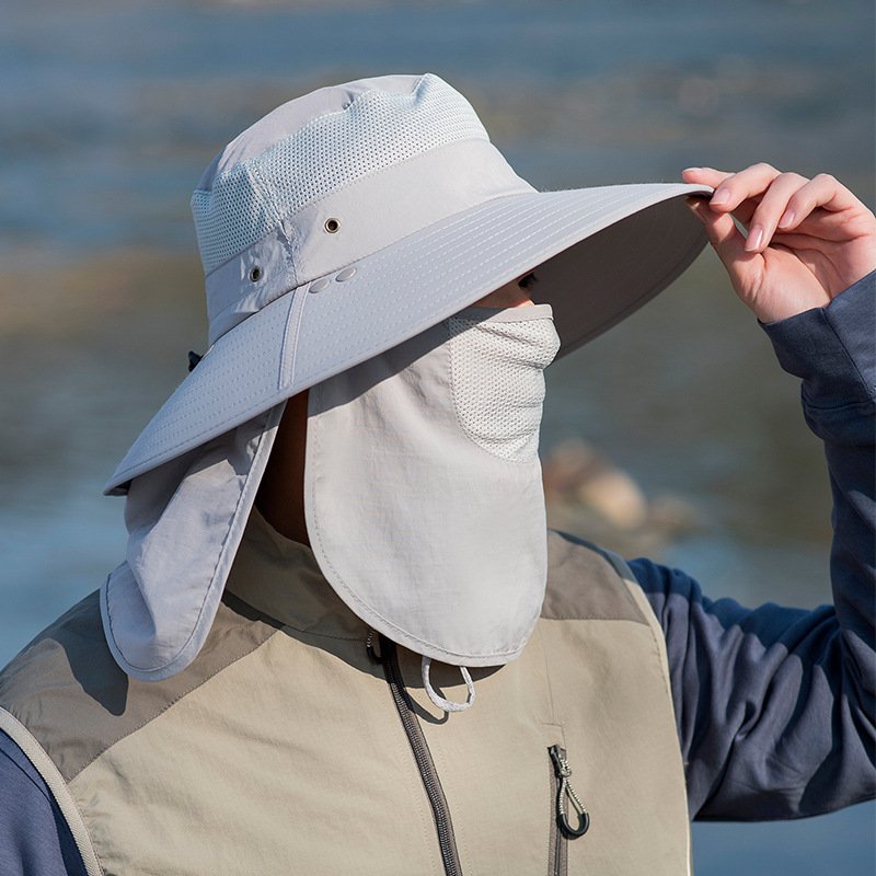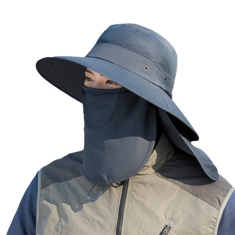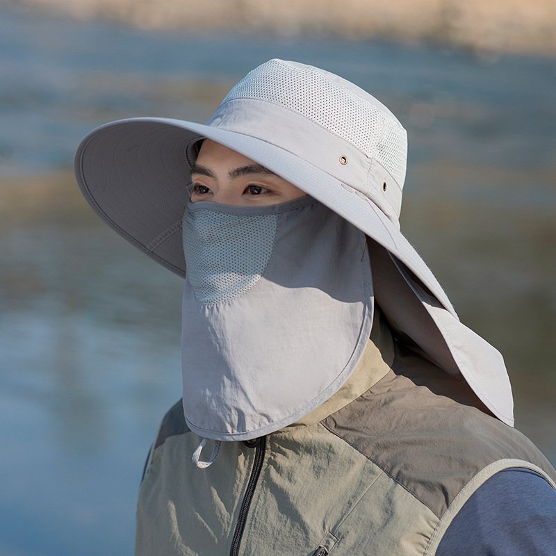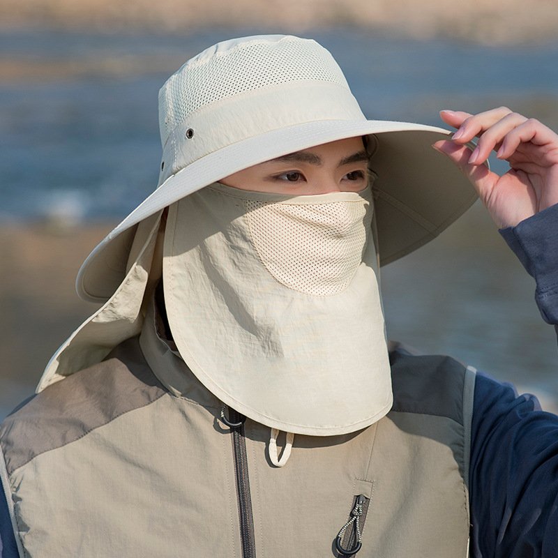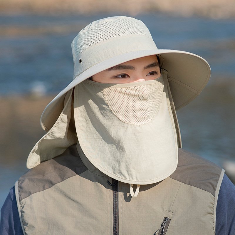 Outdoor Sun Protection Fisherman Hat Men’s Summer Multi-Functional Mask to Cover Face and Neck Mountaineering Hiking Breathable Quick-Drying Sun Hat