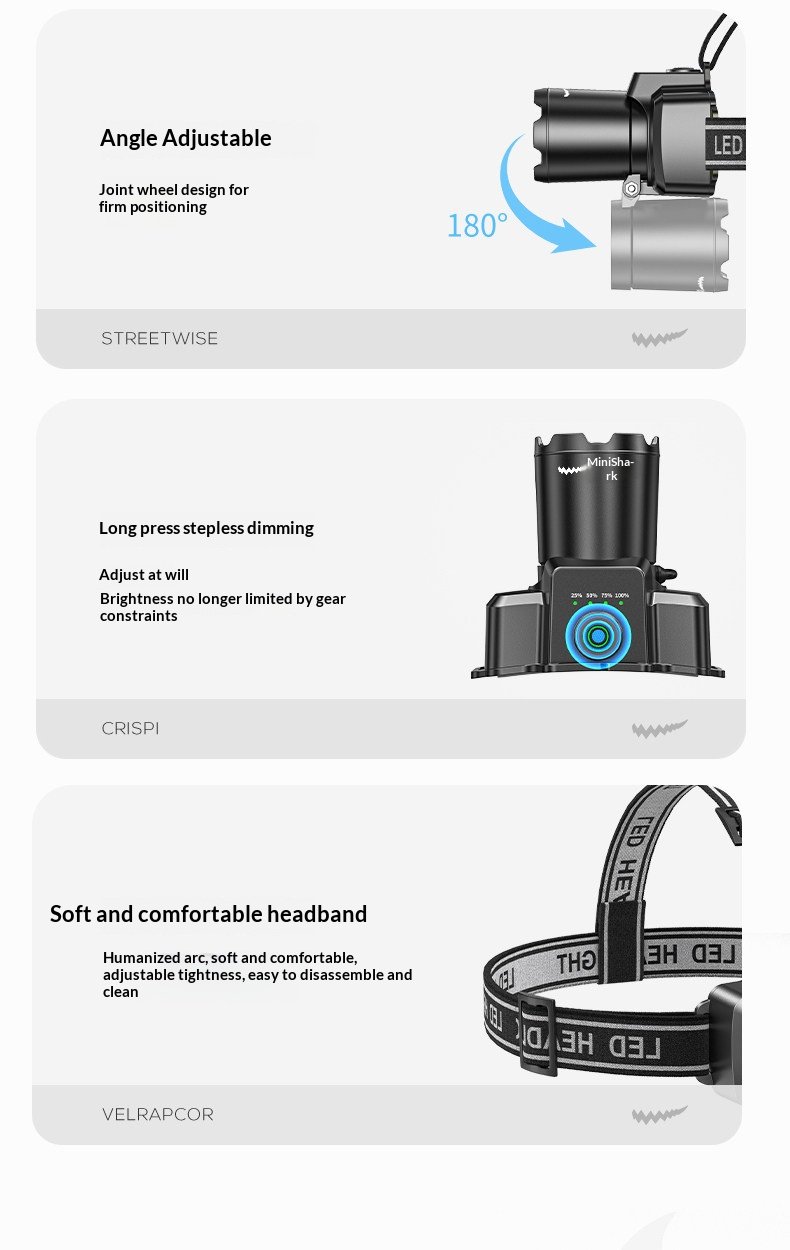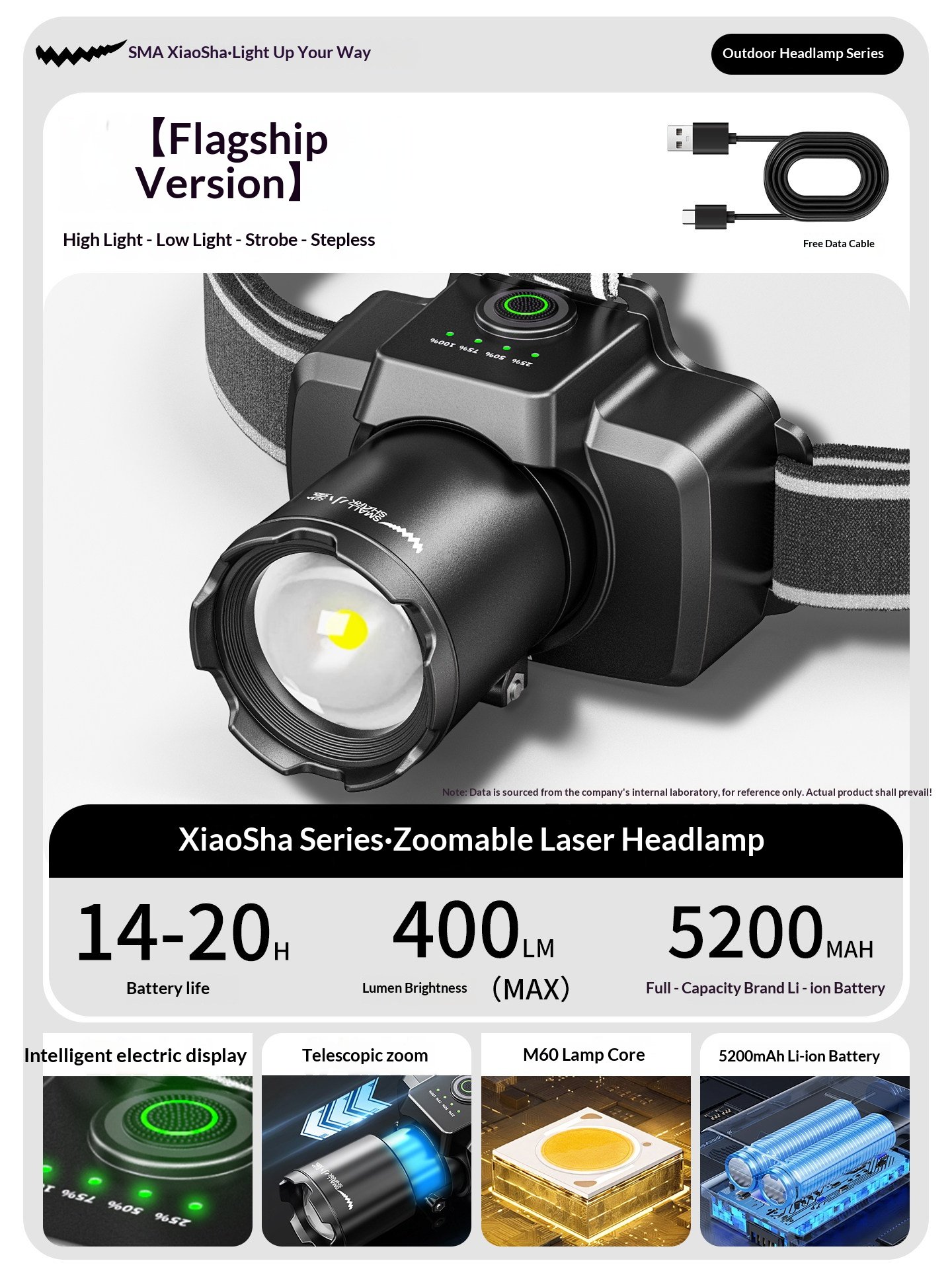 Small Shark Headlamp 2026 New Outdoor Strong Light Ultra Bright Outdoor Mountaineering Long Range Headwear Lighting 3001