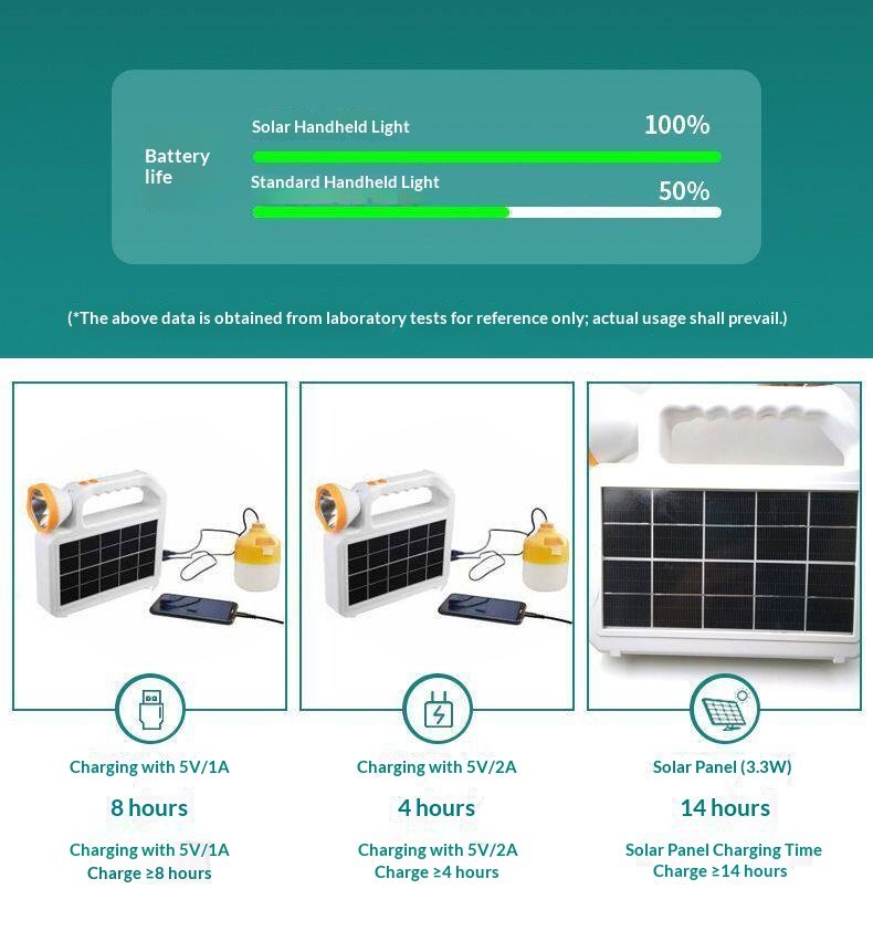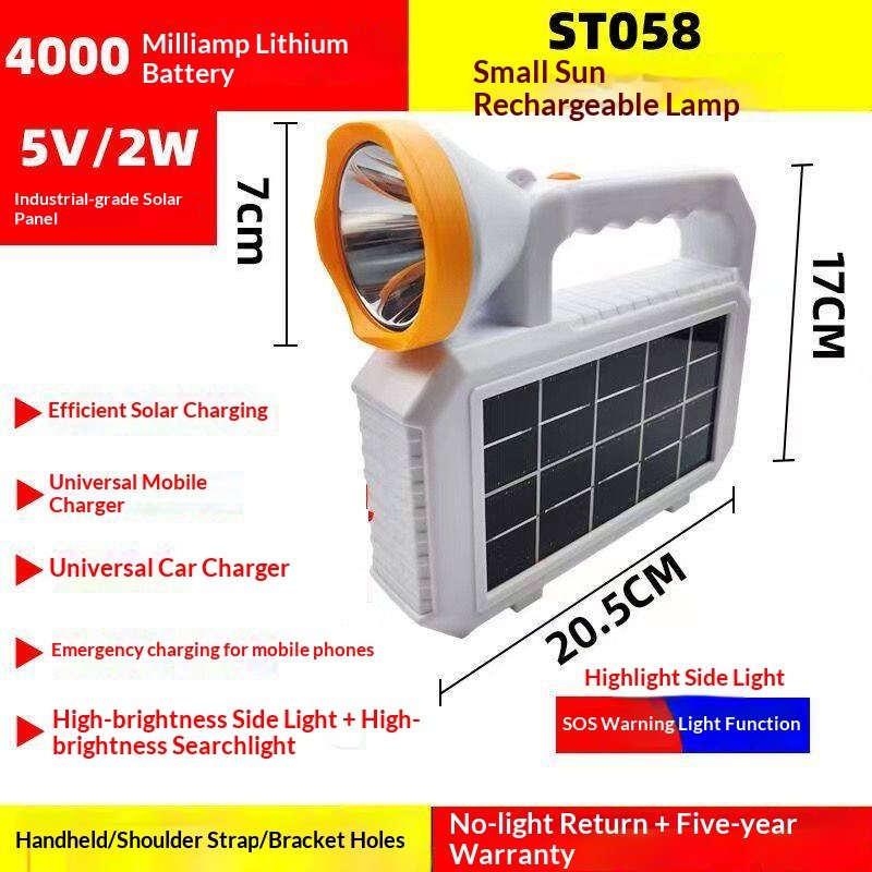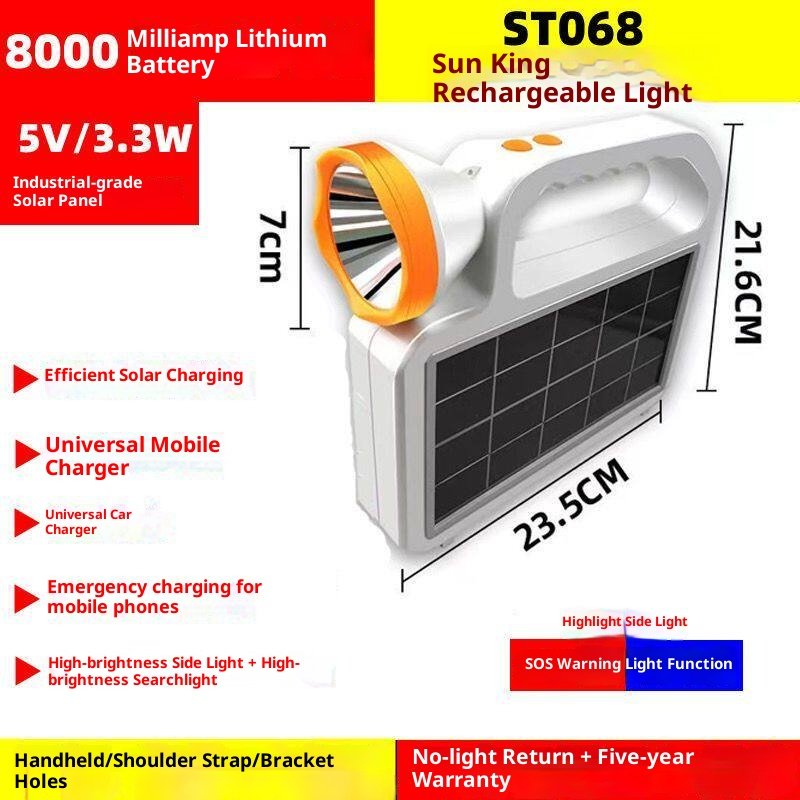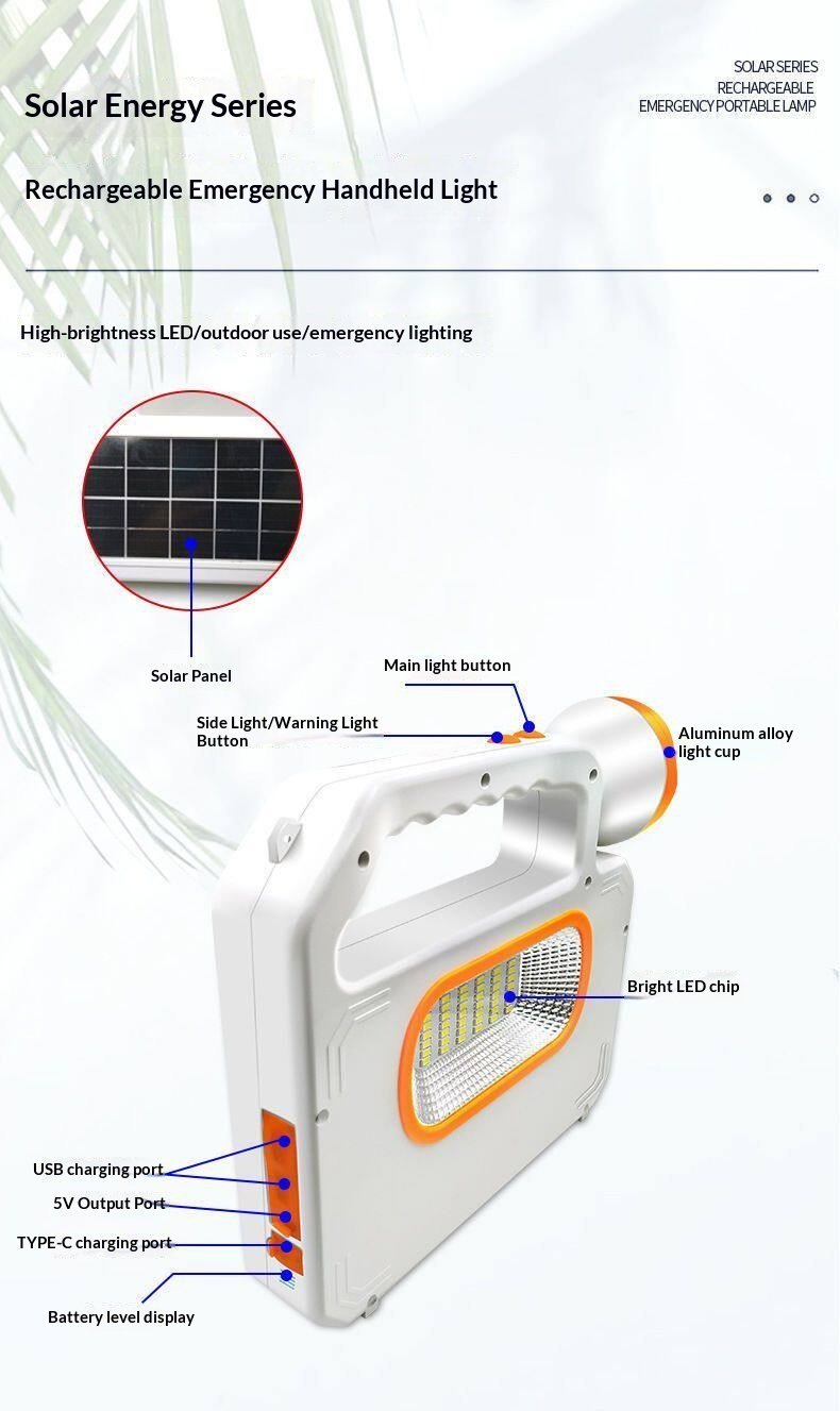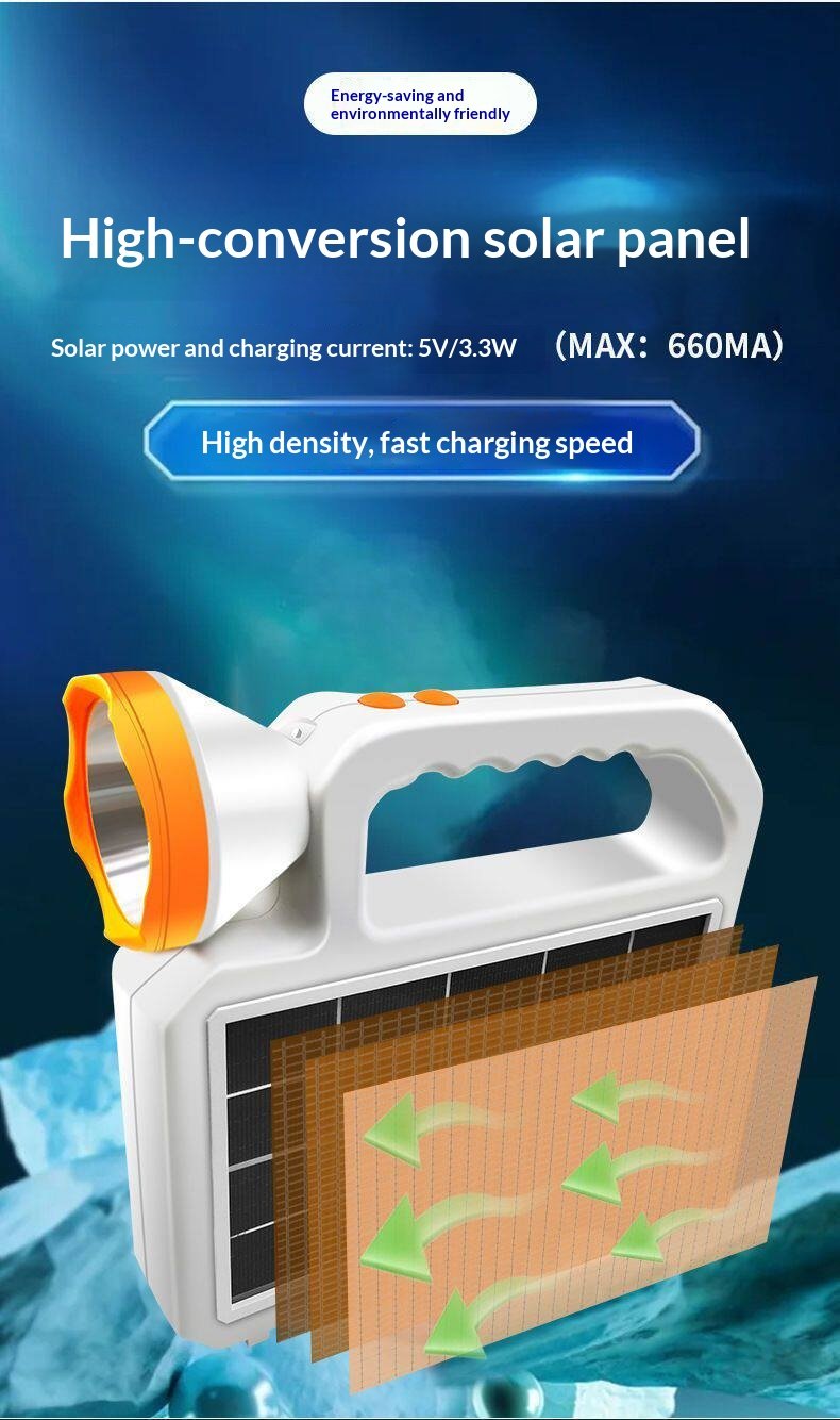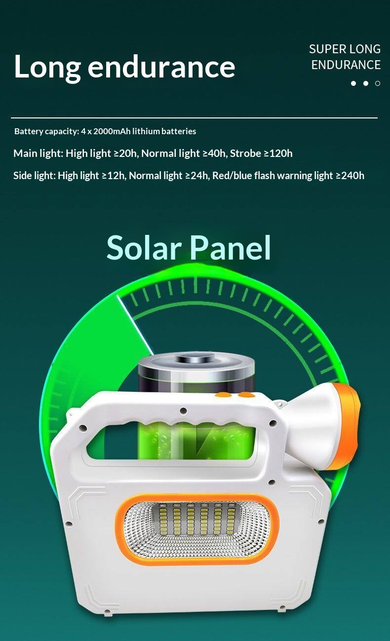 Solar Lighting Flashlight Emergency Light Outdoor Light Work Light Strong Light Charging Long Endurance Large Capacity