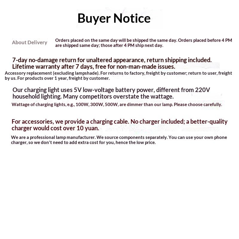 Lamp body material: PMMA (acrylic)