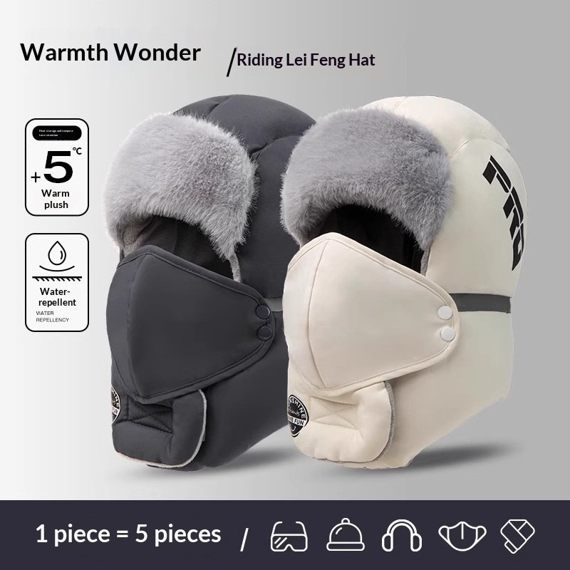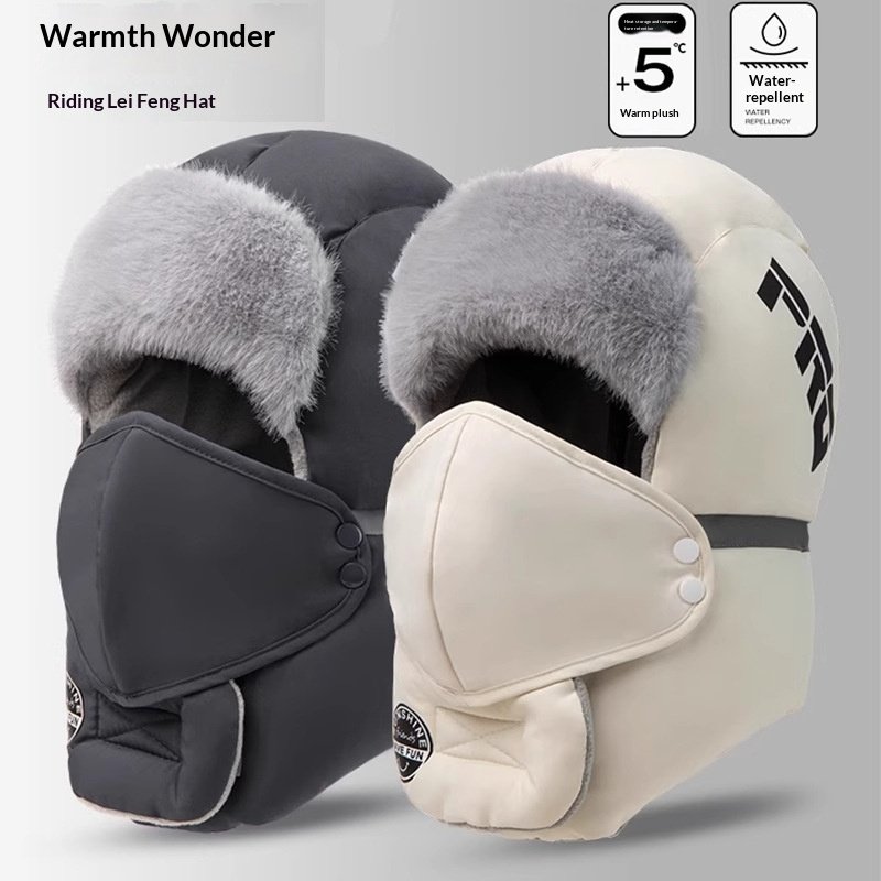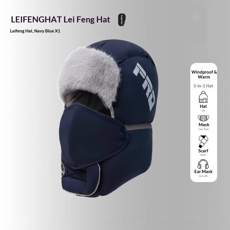 Warm Cycling Essential Lei Feng Hat for Men, New Winter Outdoor Windproof and Cold-Proof, Fleece-Lined and Thickened Ear-Protecting Northeast Cotton Hat