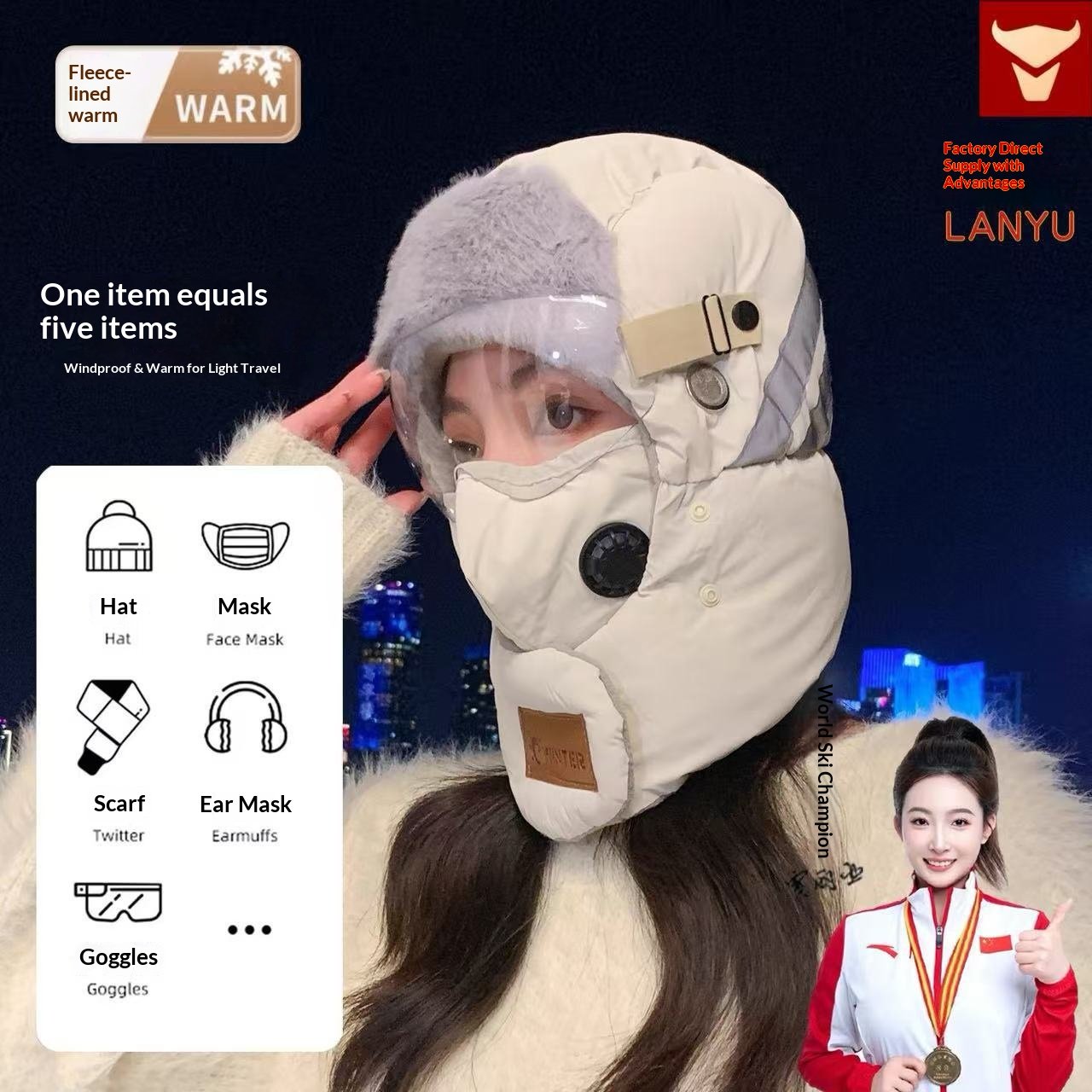 Winter Warm Ear Protection Lei Feng Hat for Men and Women Cycling Windproof Mask Integrated Velvet Neck Protection Hat Outdoor Cold Protection Hat